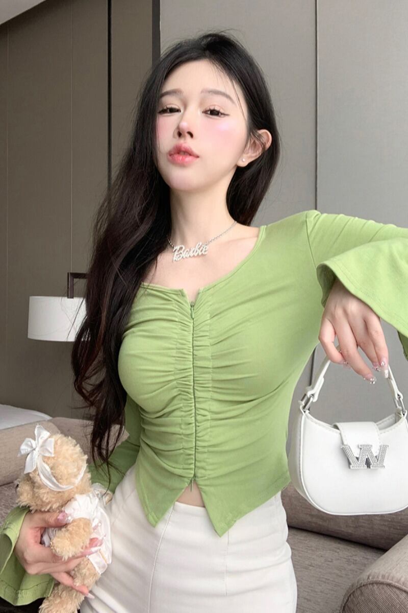 長袖 Tシャツ レディース 2023 夏 新しいデザインセンス ニッチシック ユニークなショートセクション スリム セクシー トップス ロング サマー 夏物 nana1401669423 | modepoisson