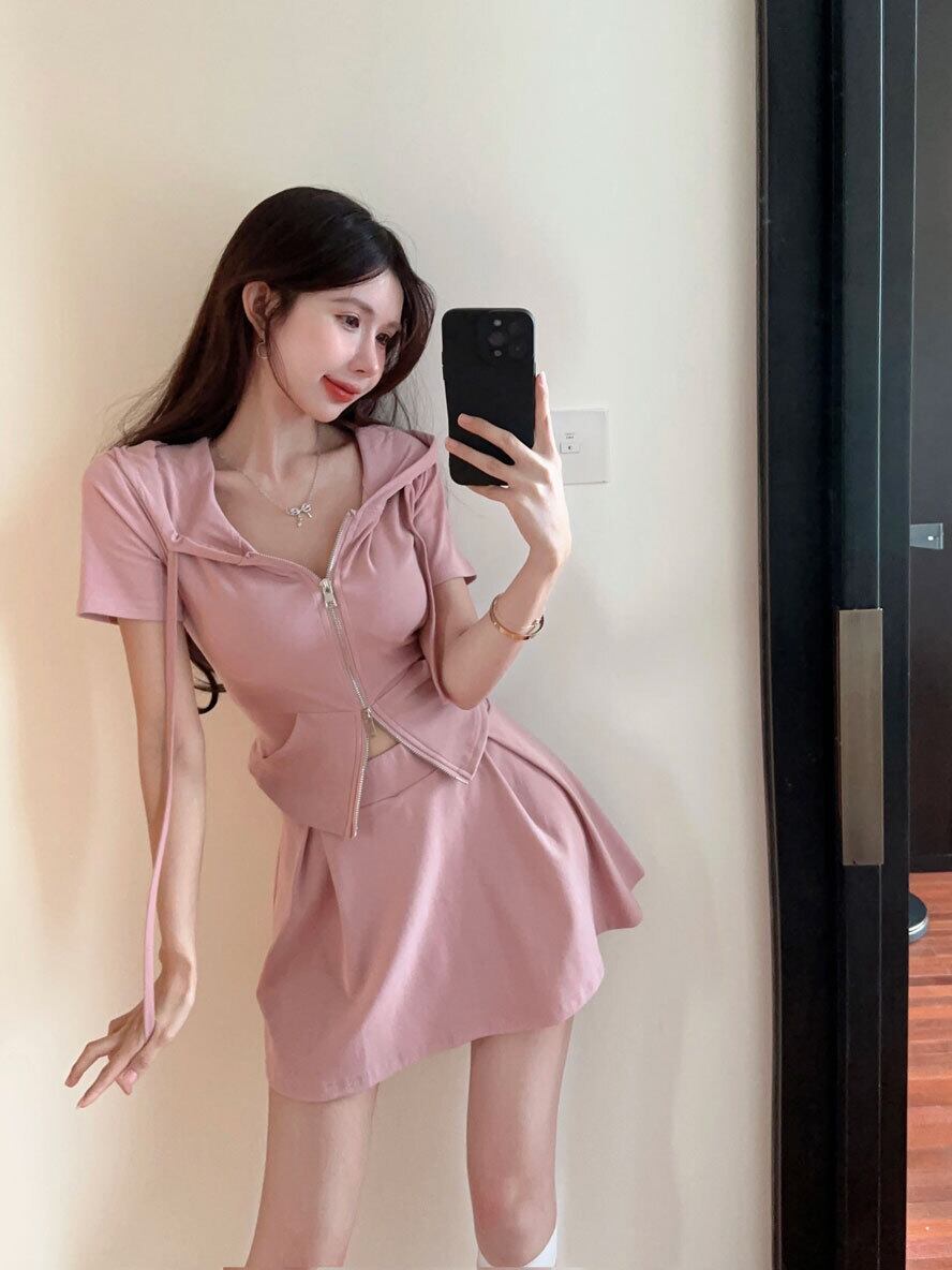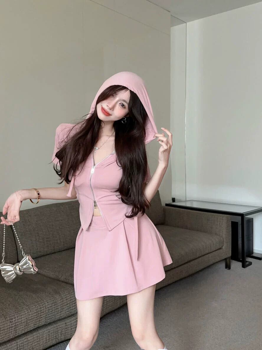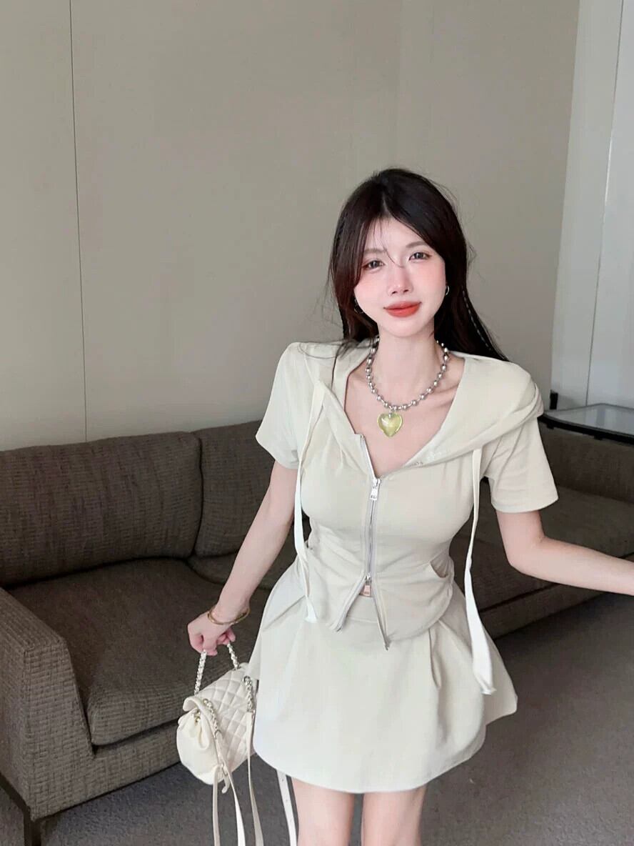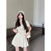 スパイス純粋な欲望フード付きセーター半袖カーディガンジャケット夏小さな揚げストリートスーツaラインスカートツーピース女性 サマー 夏物 ピュア nana88519489745 | modepoisson