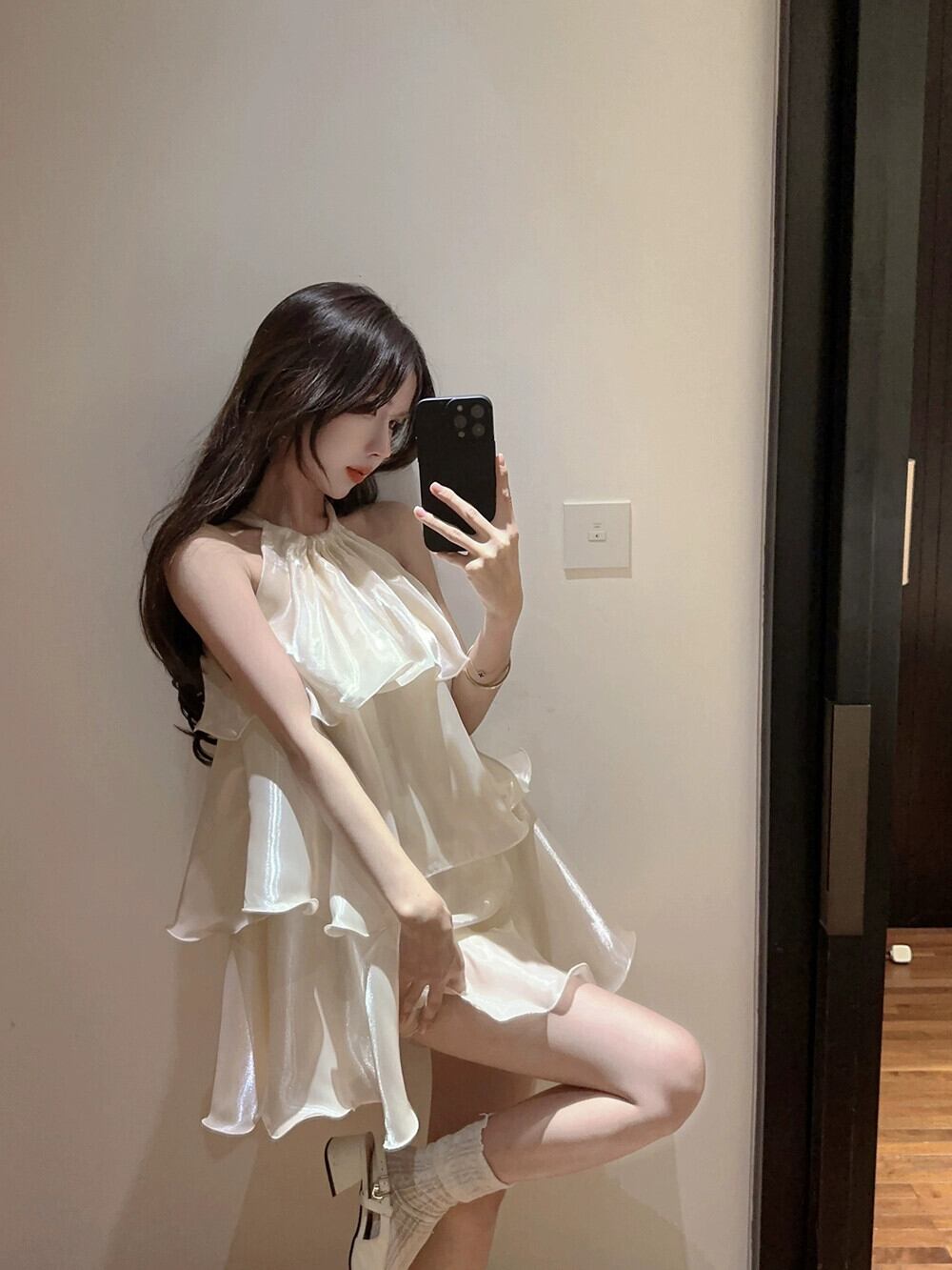 甘い気質ぶら下げネックサスペンダードレス夏の新しいセクシーなフランスのハイエンド優しい風ケーキショートスカートの女性 大人ガーリー スウィート キュート カジュアル サマー 夏物 nana30482703750 | modepoisson