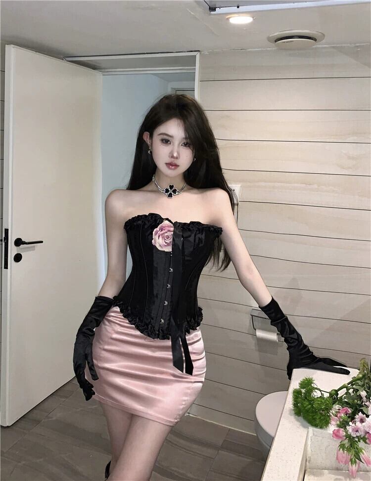 甘辛スタイルスーツ揚げストリートスカート女性純粋な欲望セクシーなチューブトップベストバッグヒップスカート夏のツーピースセット 大人ガーリー スウィート キュート カジュアル サマー 夏物 ピュア nana29712603186 | modepoisson