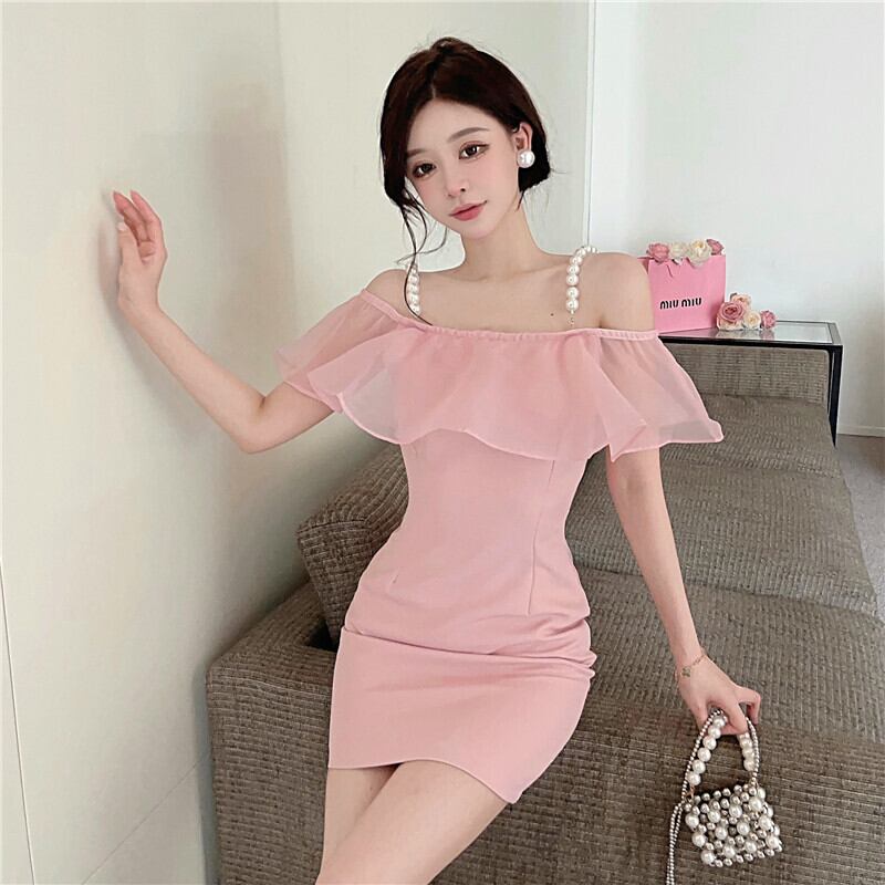 甘くてスパイシーな一言襟サスペンダードレス女性の夏フレンチウエストセクシーなパッケージヒップスカートフリル気質ショートスカート 大人ガーリー スウィート キュート カジュアル サマー 夏物 nana21965014191 | modepoisson