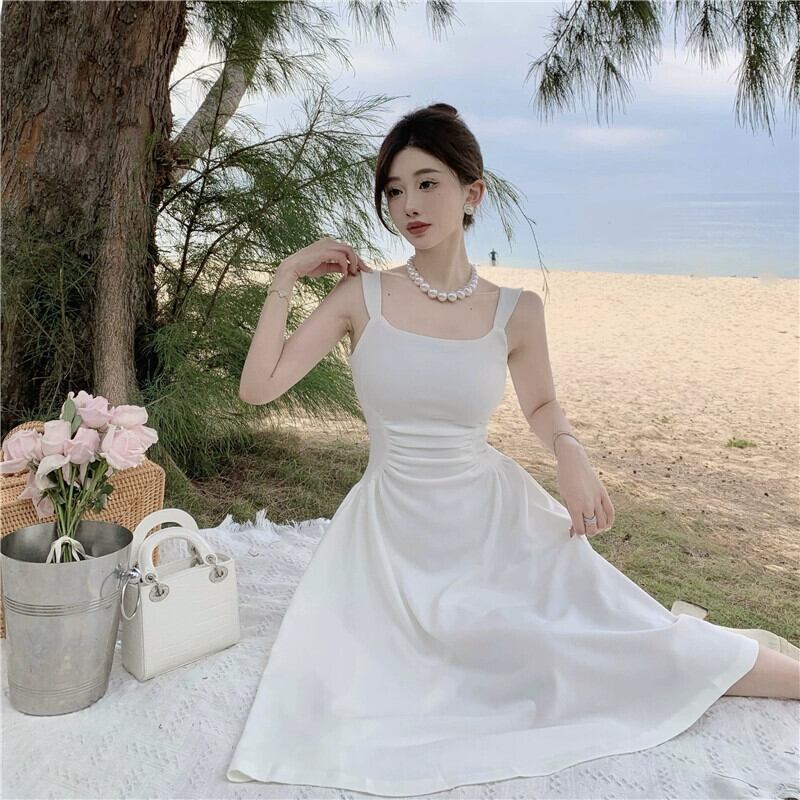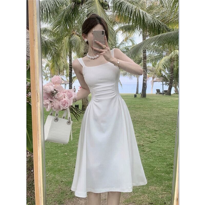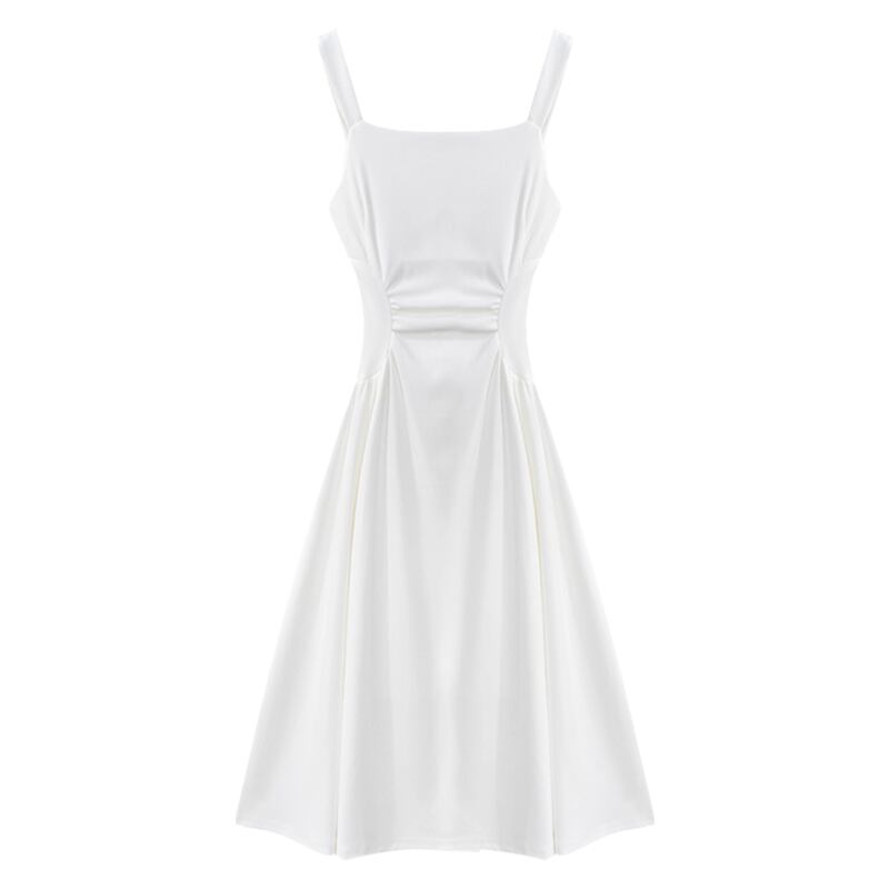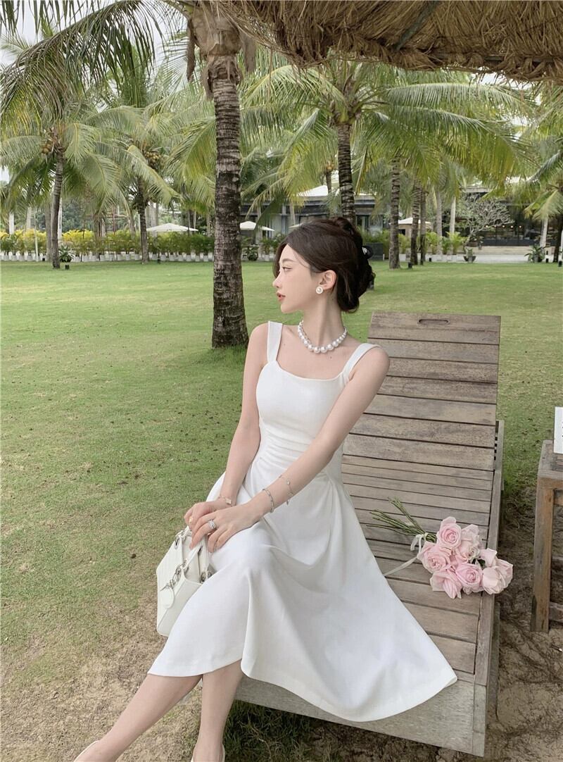 ホワイトウエストスクエアカラーサスペンダードレス女性のフランスの自己修養気質ロングスカート夏の 2023 新しいスカート優しい サマー 夏物 スクウェア nana53396169827 | modepoisson