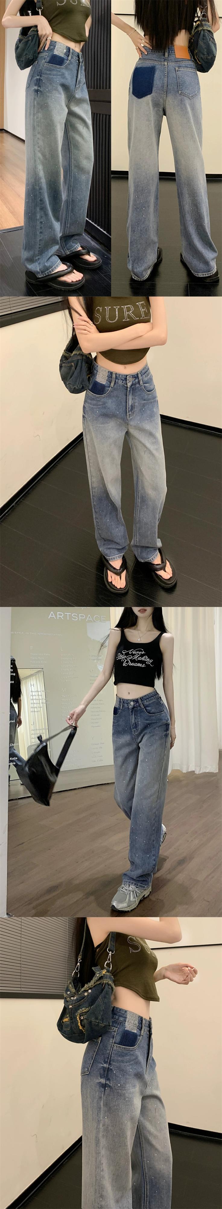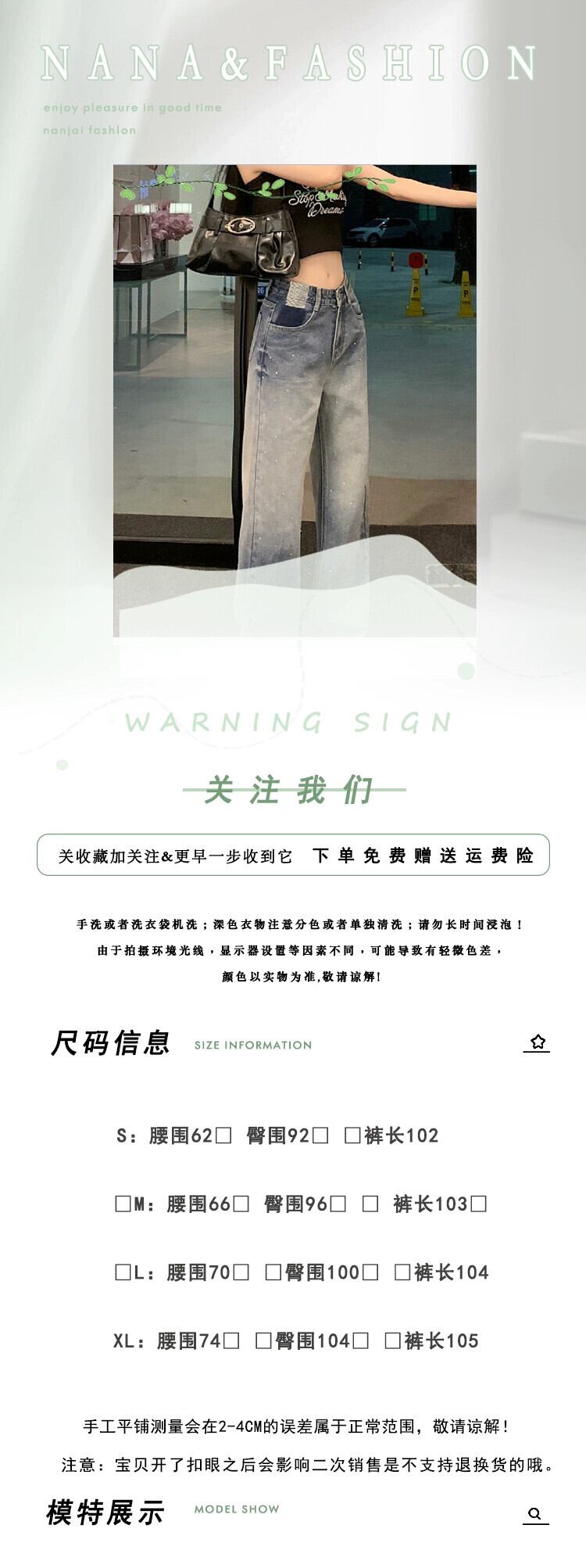 ワイドレッグジーンズのストレートナローバージョンの女性の2023新しい重工業ダイヤモンドハイウエストグラデーションカラールーズスリムパンツ ハイウェスト nana79476712809 | modepoisson
