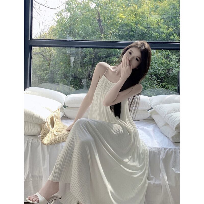 怠惰なスタイルのスリングドレスの女性の夏のフランスの海辺のビーチホリデーロングスカートハイウエスト気質ルーズスカート ハイウェスト サマー 夏物 nana30571980788 | modepoisson
