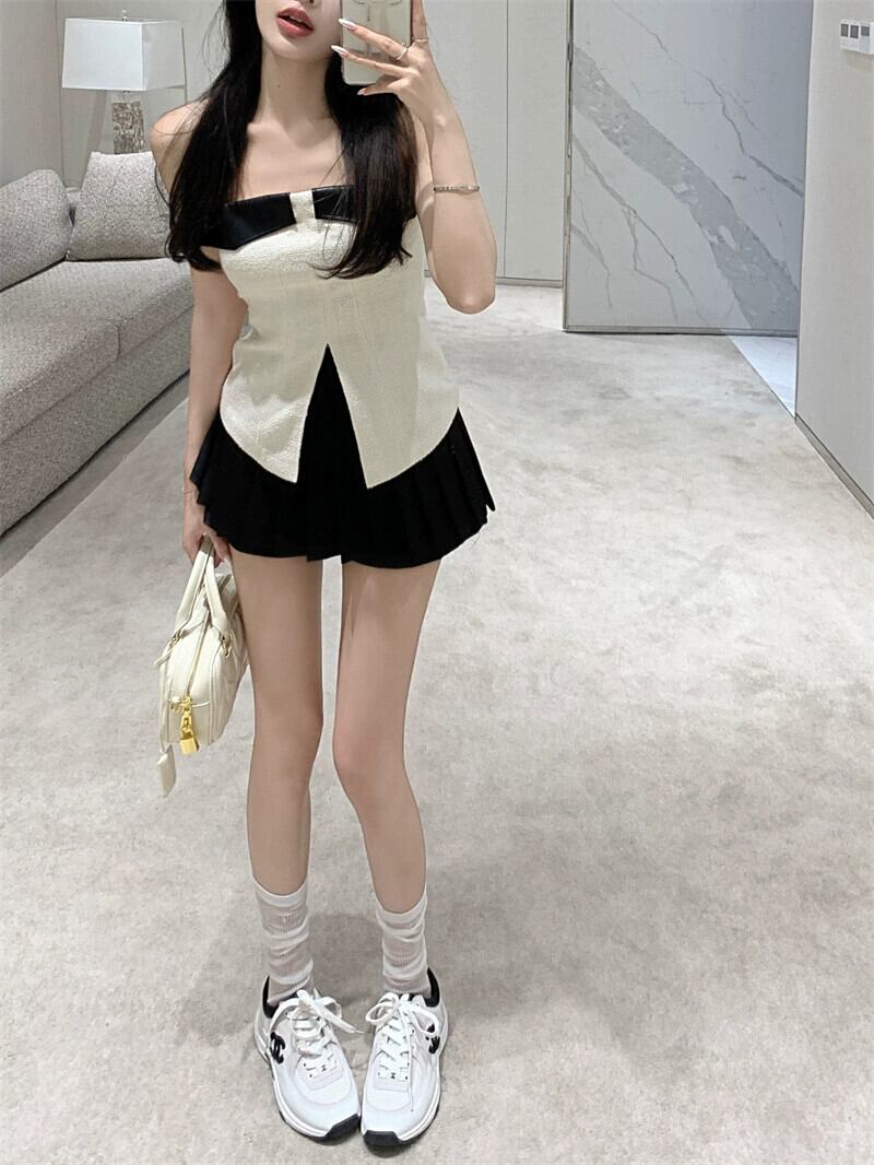 色:オフホワイトのチューブトップ,1980#プリーツスカート