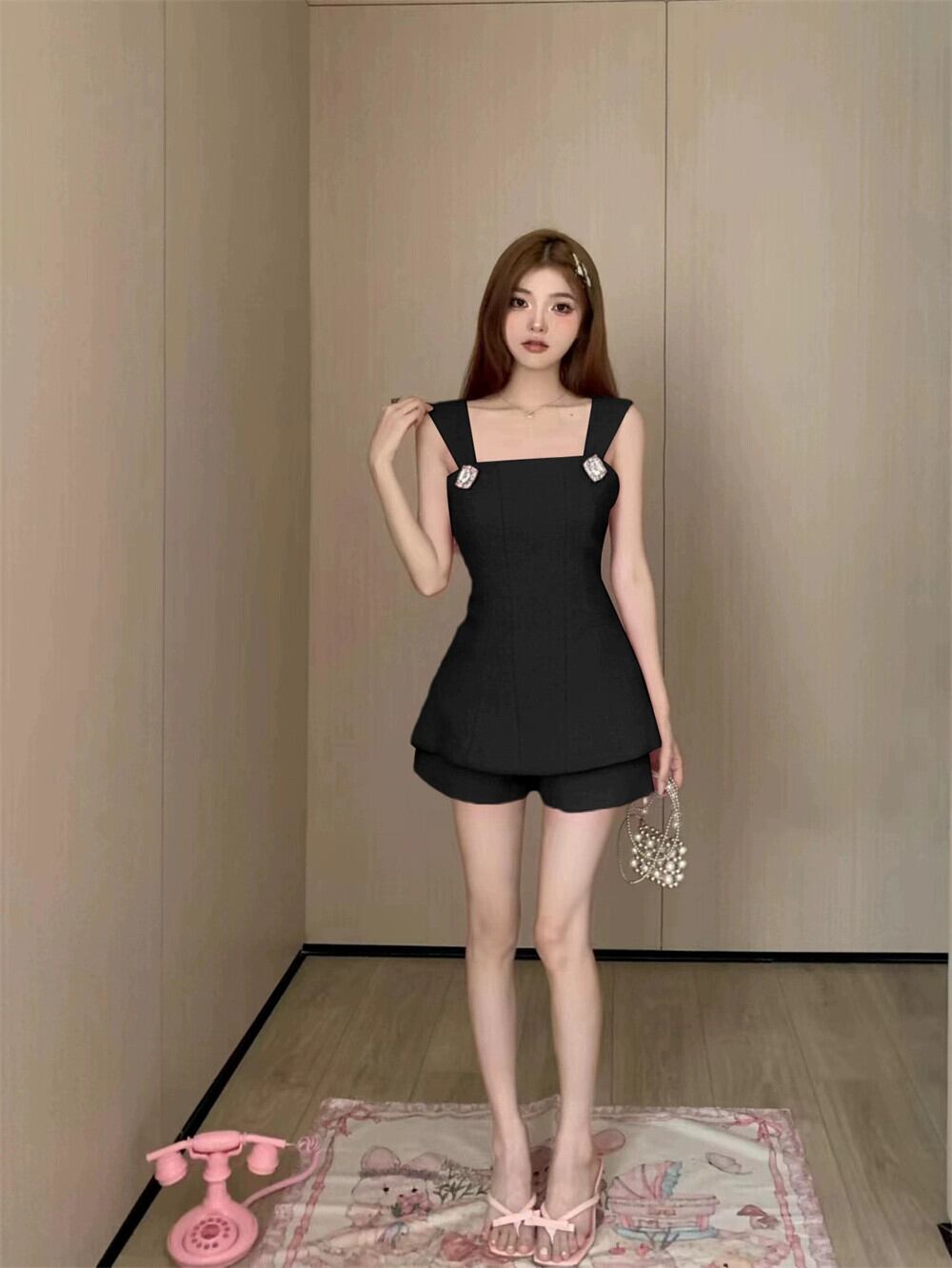 サマースーツ女性セレブファッションサスペンダーデザインセンスニッチトップハイウエスト薄手ショーツ小香風2点セット ハイウェスト 夏物 ブルマー nana44954660655 | modepoisson