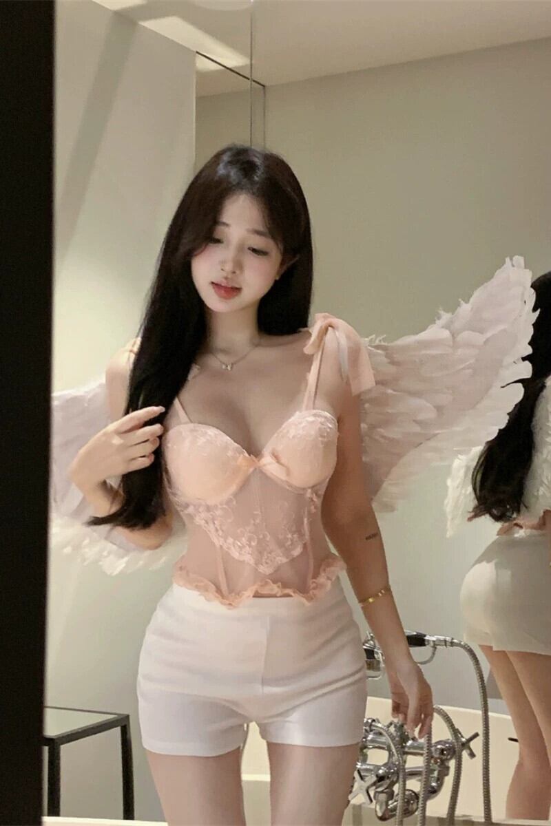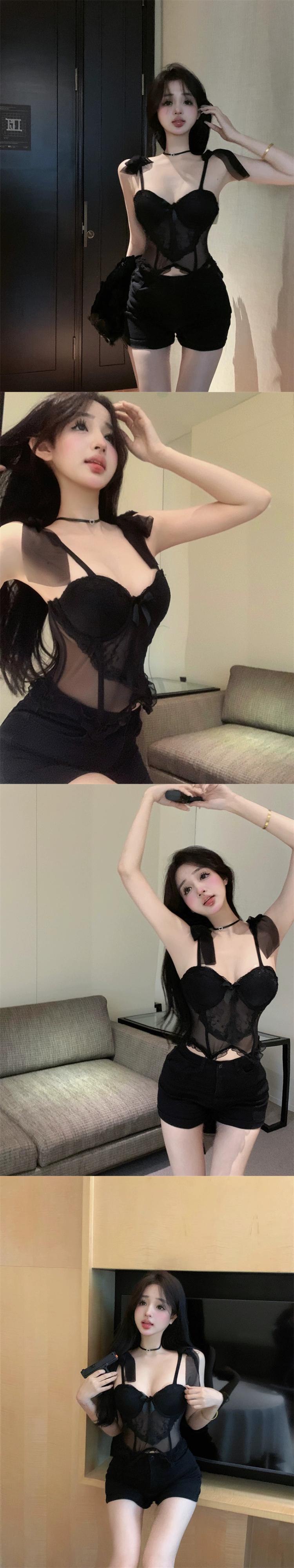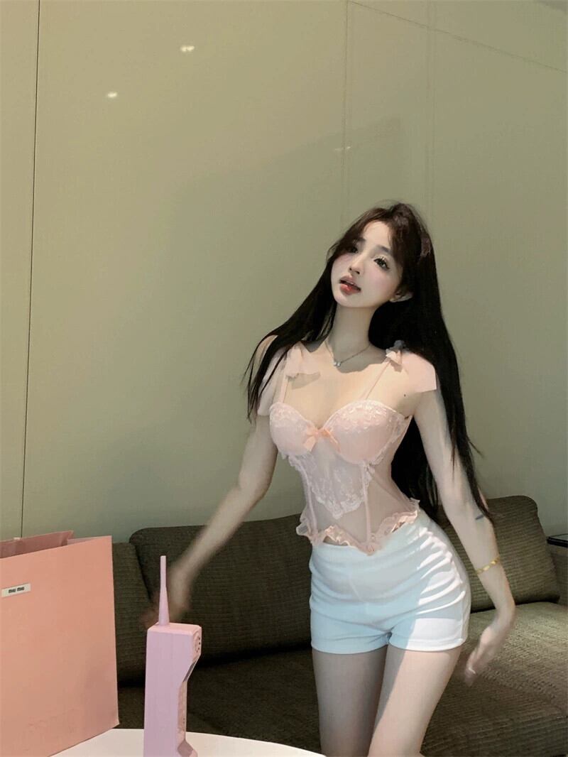 甘い女の子レース小さなキャミソール女性の夏の純粋な欲望セクシーなストラップフィッシュボーンインナーウェアショートスモールトップアウター 大人ガーリー スウィート キュート カジュアル サマー 夏物 ピュア nana36033942991 | modepoisson