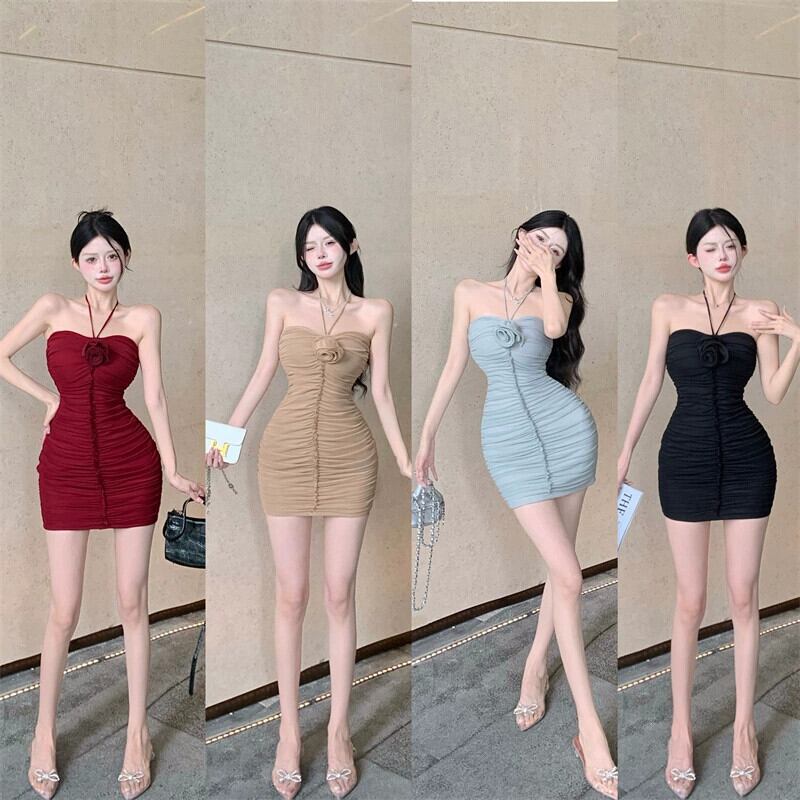 純粋な欲望スパイスガールズホルターネックサスペンダードレス女性夏ひだセクシーなウエストスリムスカートノースリーブヒップスカート サマー 夏物 nana72316711555 | modepoisson