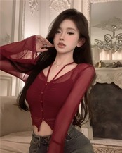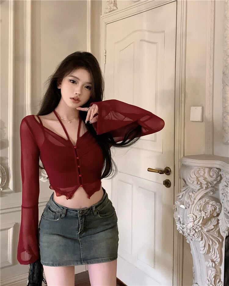 スリムになりたいという熱い純粋な願望、ストラップ付きの T シャツ吊りネックベストとツーピースのシックな甘くてスパイシーなトップスーツの女性 大人ガーリー スウィート キュート カジュアル Tシャツ ピュア nana72144993283 | modepoisson