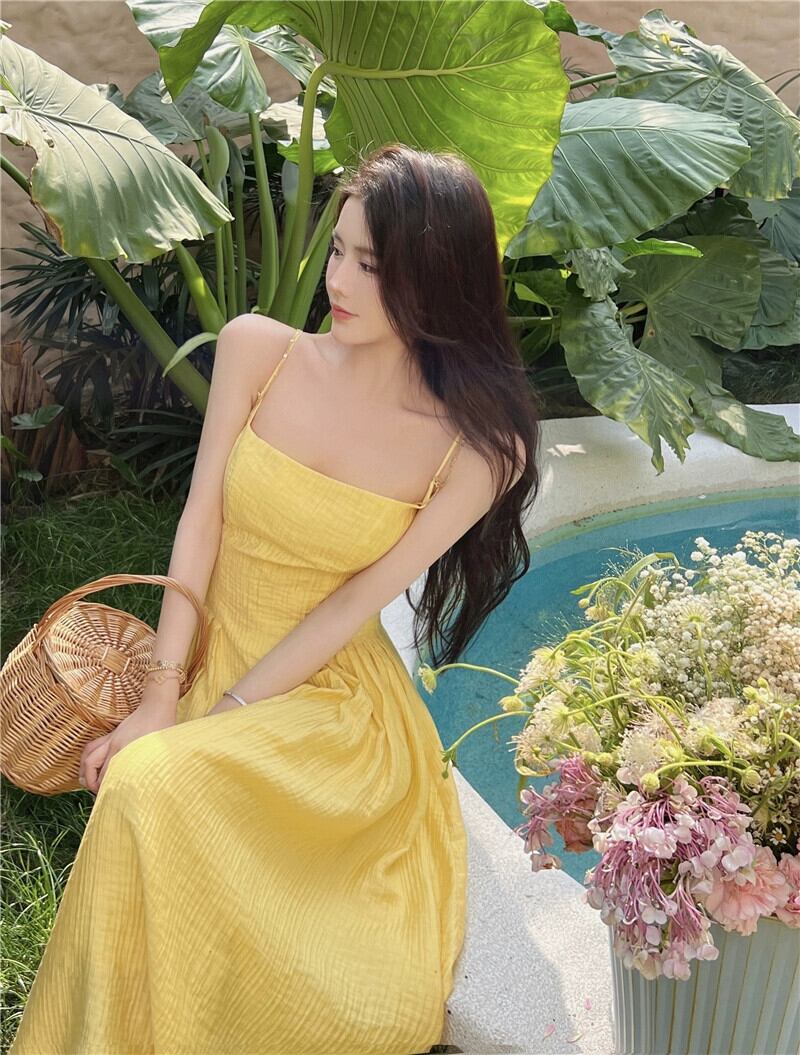 甘いセクシーなサスペンダードレスホリデースタイルロングスカートフレンチウエスト気質スカート2023新しい女性の夏 大人ガーリー スウィート キュート カジュアル サマー 夏物 nana25752687498 | modepoisson