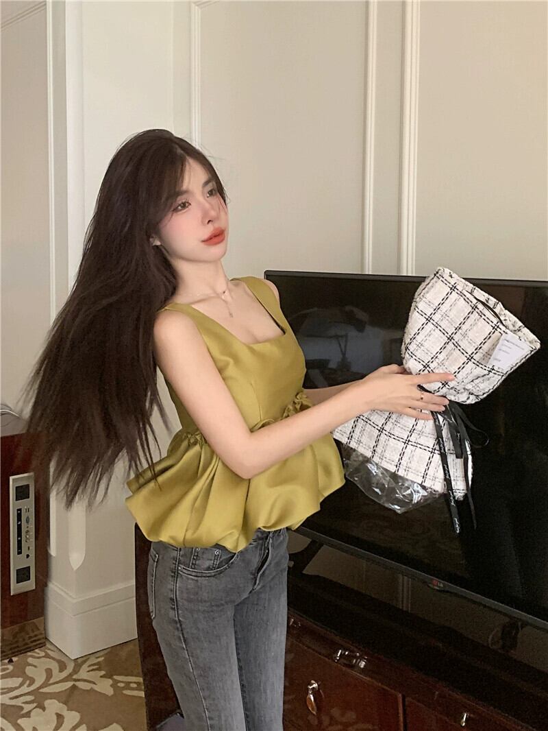 -end 気質スクエアカラーキャミソールレディース夏新作シックな甘辛アウターフレンチノースリーブトップス 大人ガーリー スウィート キュート カジュアル サマー 夏物 スクウェア nana44319593619 | modepoisson