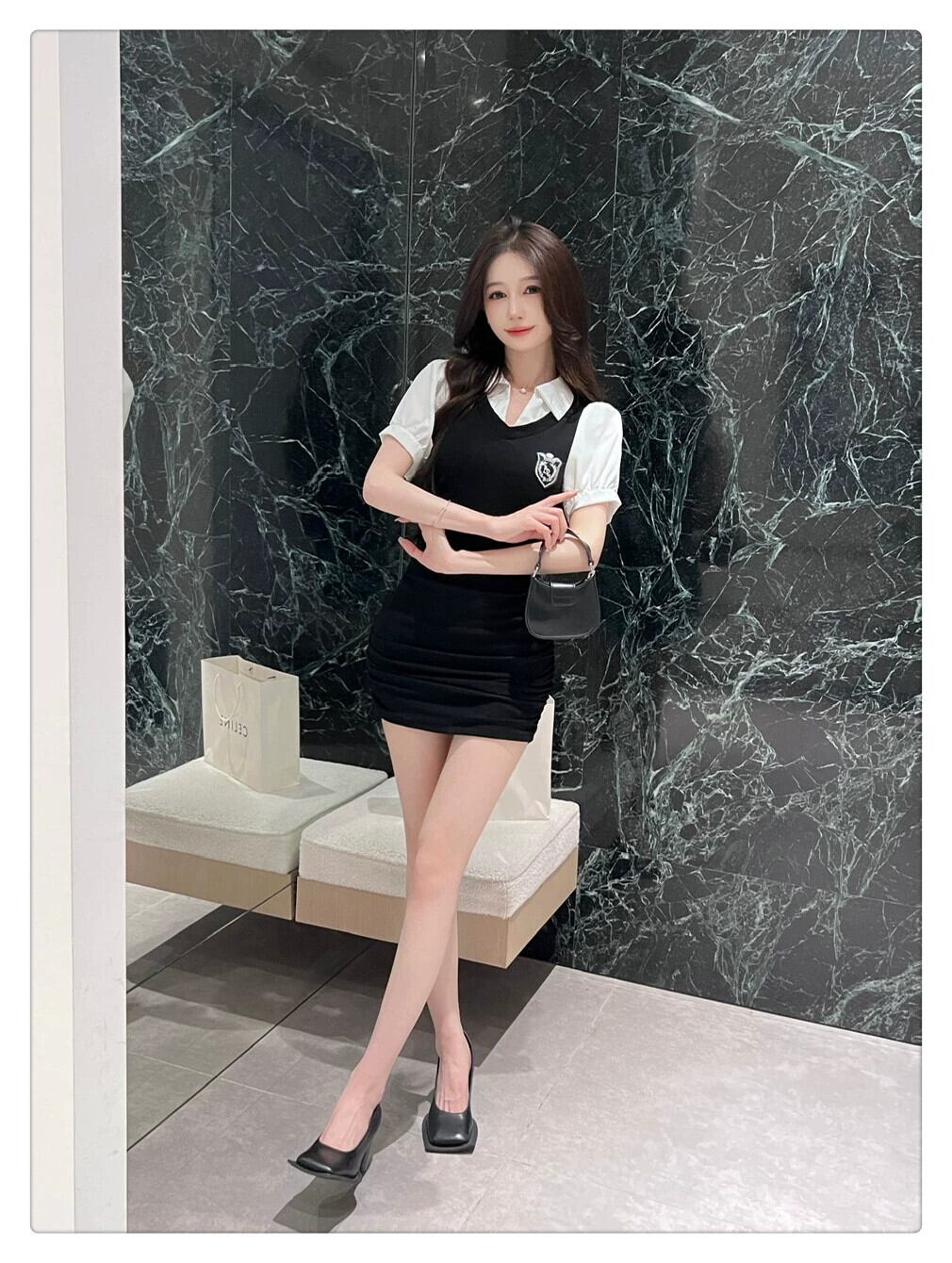 カレッジスタイルの半袖ドレスの女性の夏の甘くてスパイシーなスタイルの偽のツーピースの短いスカートのデザイン、自己修養の感覚と薄いスカート ショート 大人ガーリー スウィート キュート カジュアル サマー 夏物 nana60955345661 | modepoisson