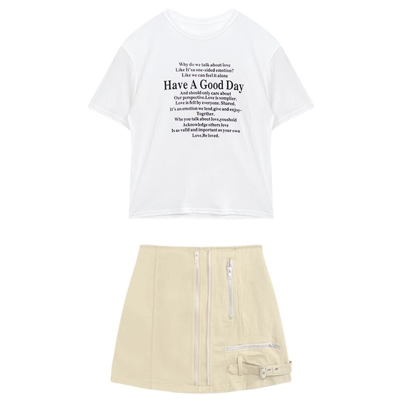 色:ホワイトT,グレーT,カードカラースカート,黒スカート