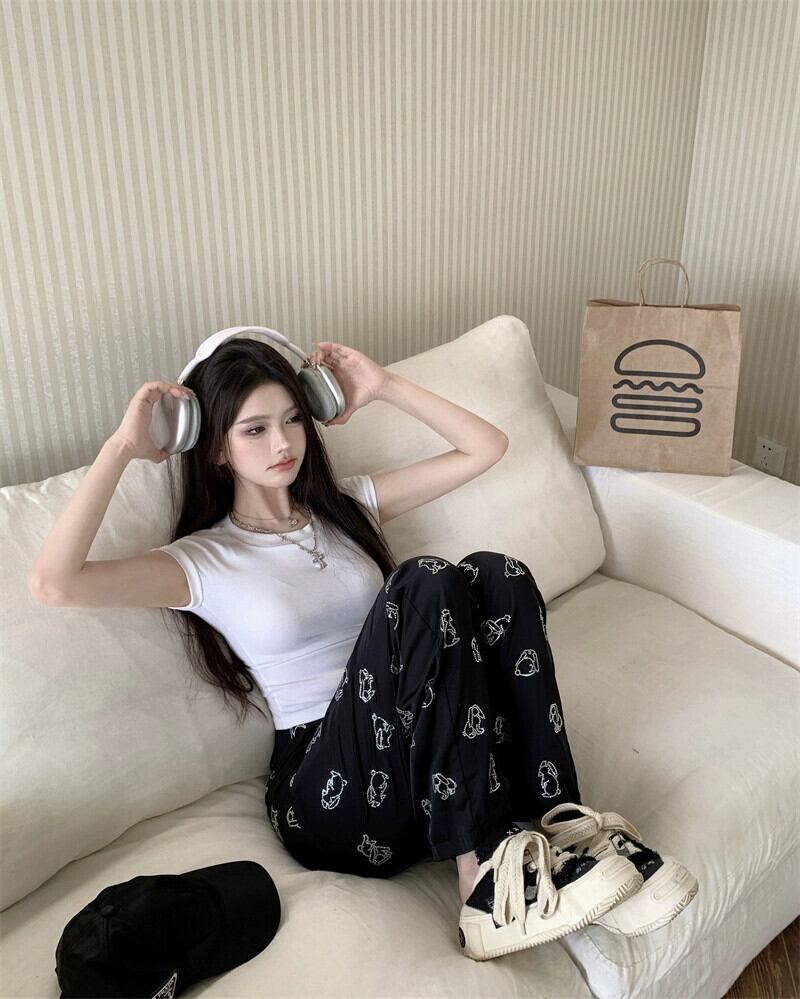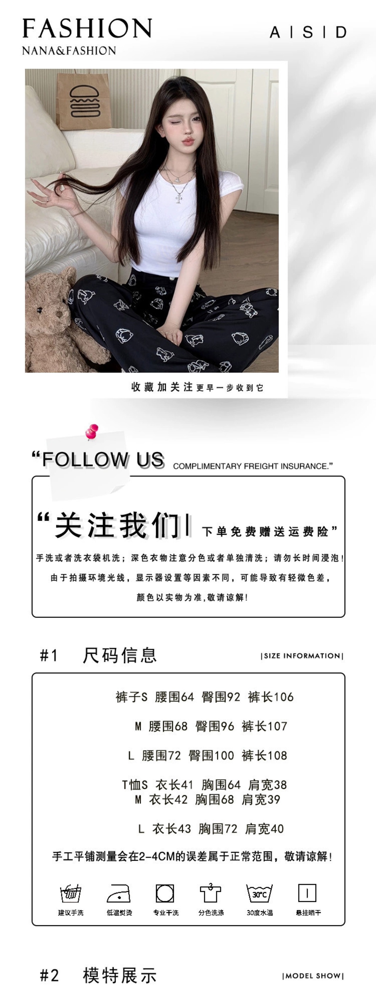 インターネット有名人揚げストリートスーツ女性の夏の新しいスリムフィット半袖Tシャツ黒のルーズカジュアルパンツ2点セット ブラック サマー 夏物 nana45326547916 | modepoisson