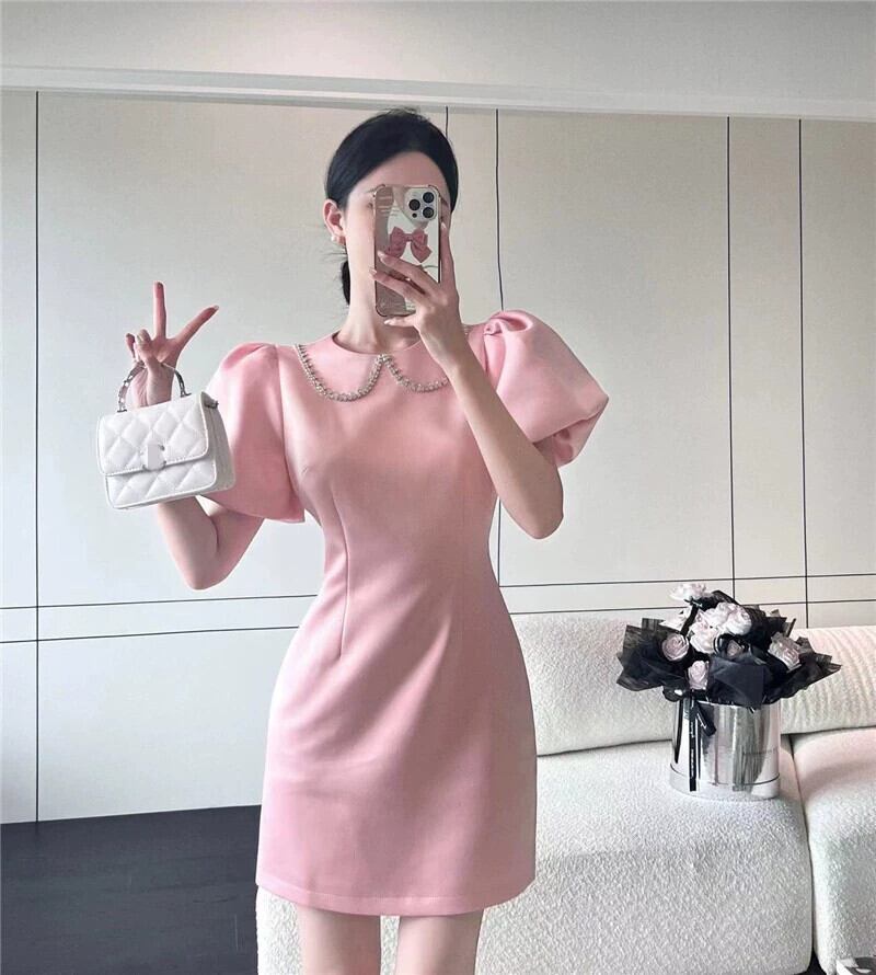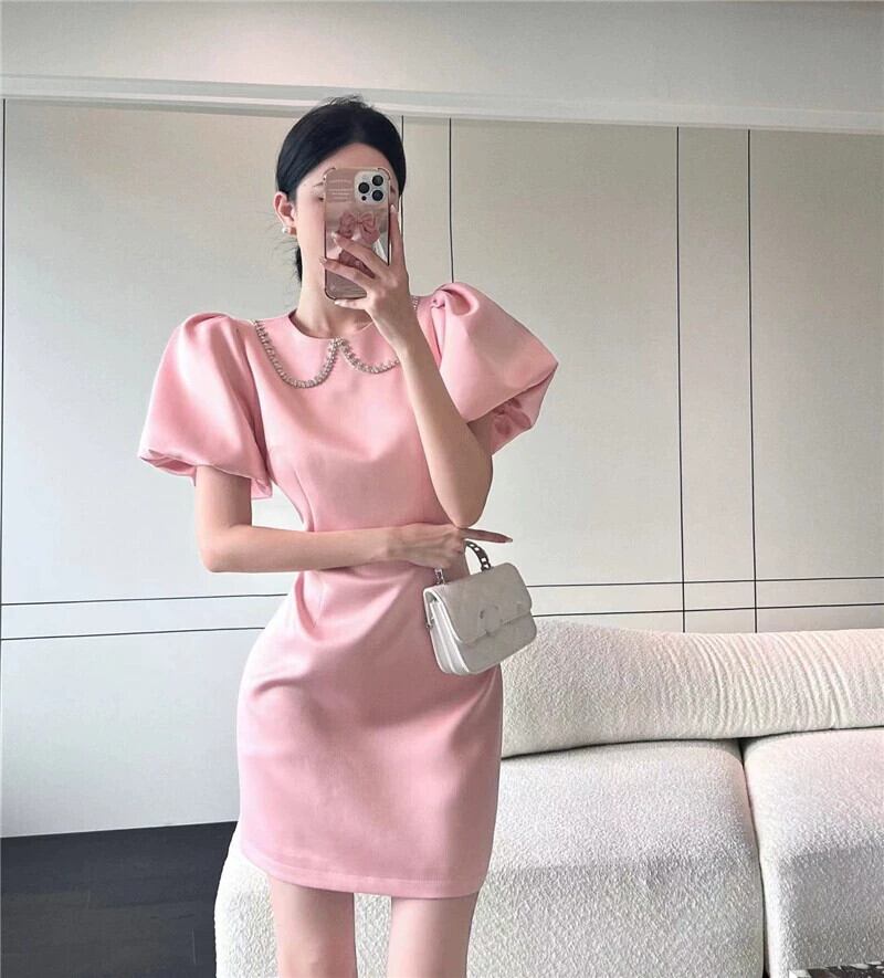 甘くてハイエンドの気質ドレス女性の夏のフランスの優しい初恋スカート 2023 新しいパフスリーブスカート 大人ガーリー スウィート キュート カジュアル サマー 夏物 nana35172985706 | modepoisson