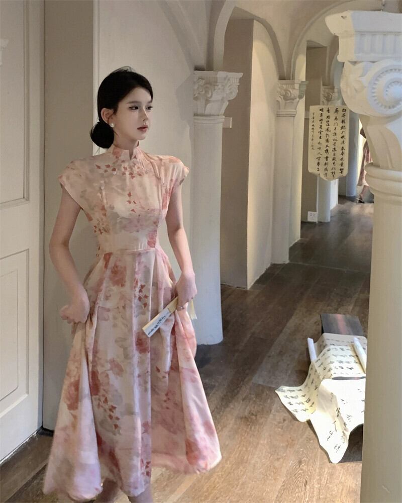 中国風の国民風改善されたチャイナドレス夏の新しいフランスの気質ウエスト痩身甘いスカート婦人服 大人ガーリー スウィート キュート カジュアル サマー 夏物 nana27212623484 | modepoisson