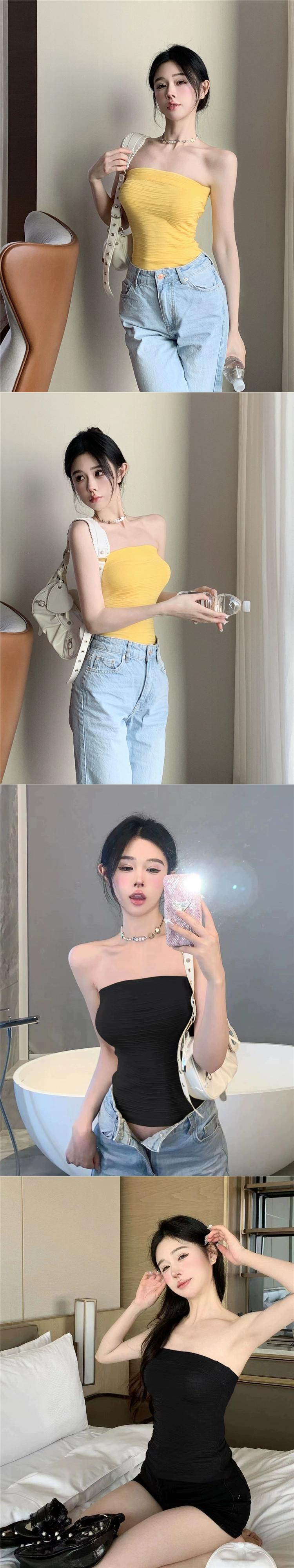 純粋な欲望セクシーなチューブトップベスト女性の夏の自己修養甘くてスパイシーなスタイルノースリーブ底ショートアウタートップ 大人ガーリー スウィート キュート カジュアル サマー 夏物 nana56666091220 | modepoisson