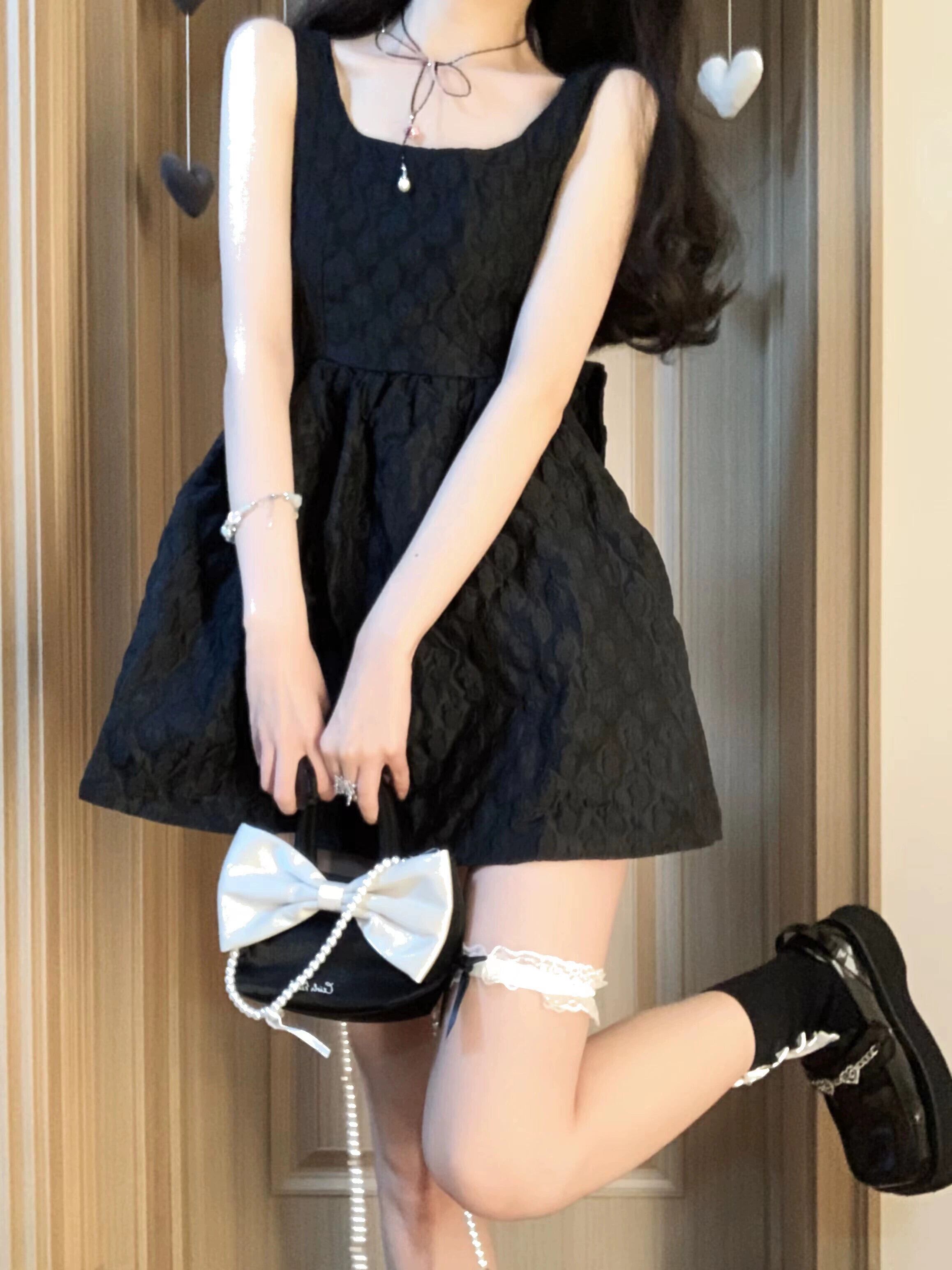 フレンチヘップバーンスタイルサスペンダードレス夏の婦人服逃亡者プリンセスリトルブラックドレス小さな弓チュチュスカート リボン サマー 夏物 パニエ ペチコート nana85034345691 | modepoisson