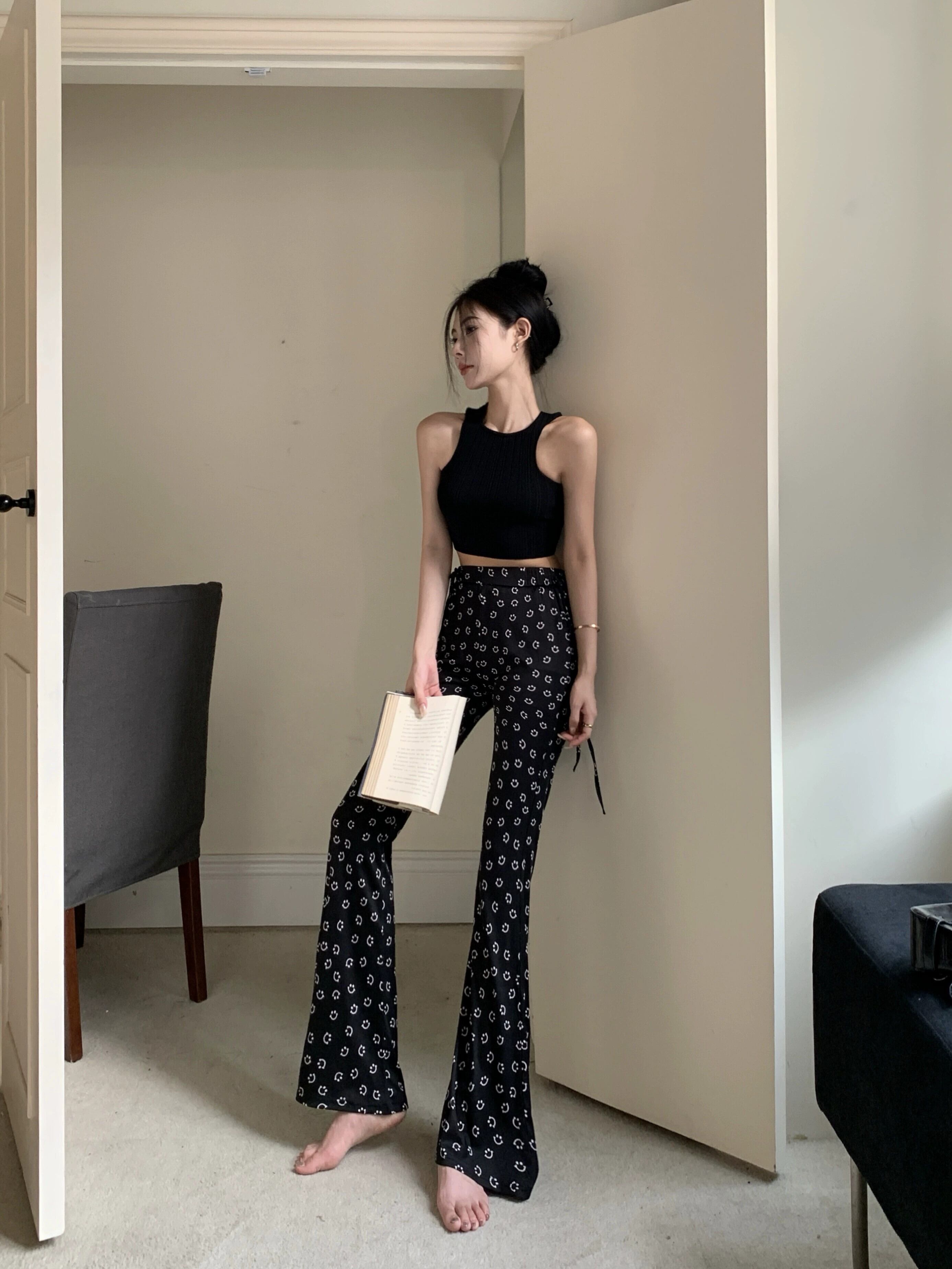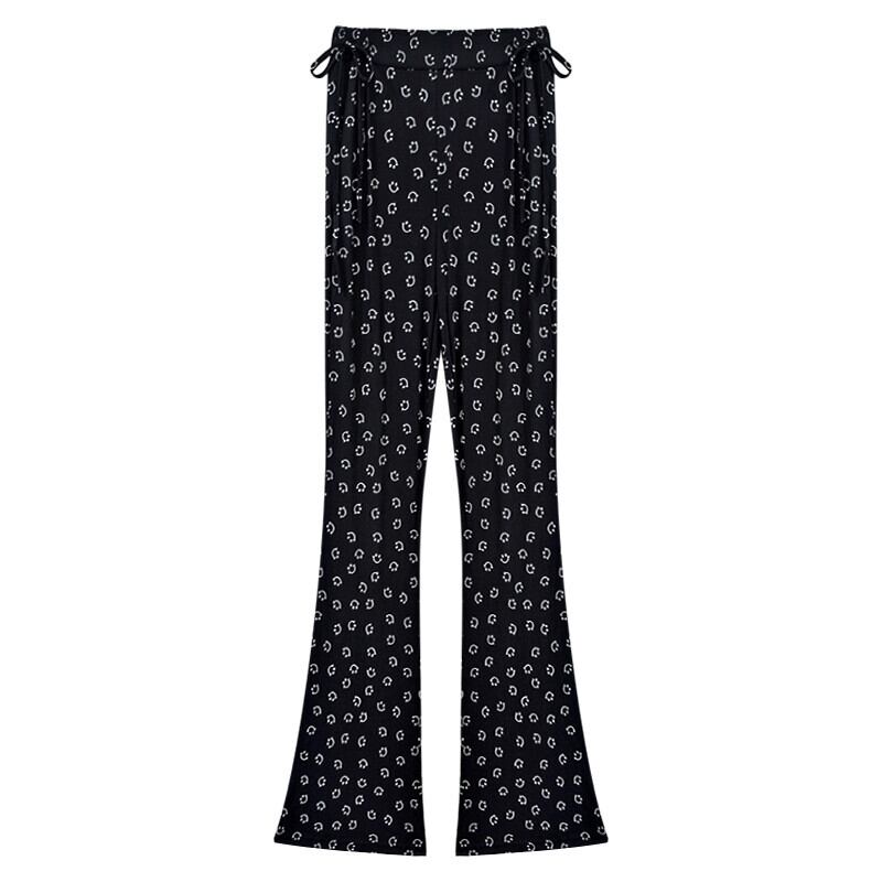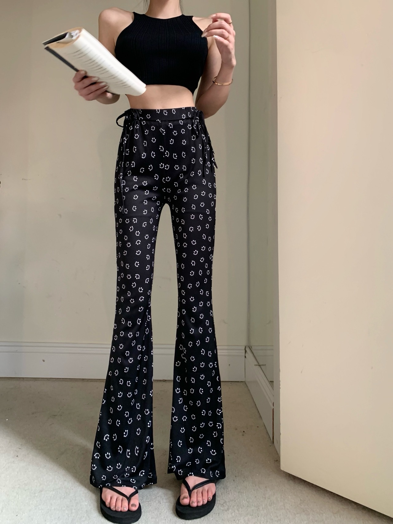 ウエスト弾性スリムカジュアルパンツ女性の 2023 新しいスマイリーフェイスプリント薄いモップパンツ夏のマイクロフレアパンツ レッド エラスティック 伸縮 サマー 夏物 nana56166328243 | modepoisson