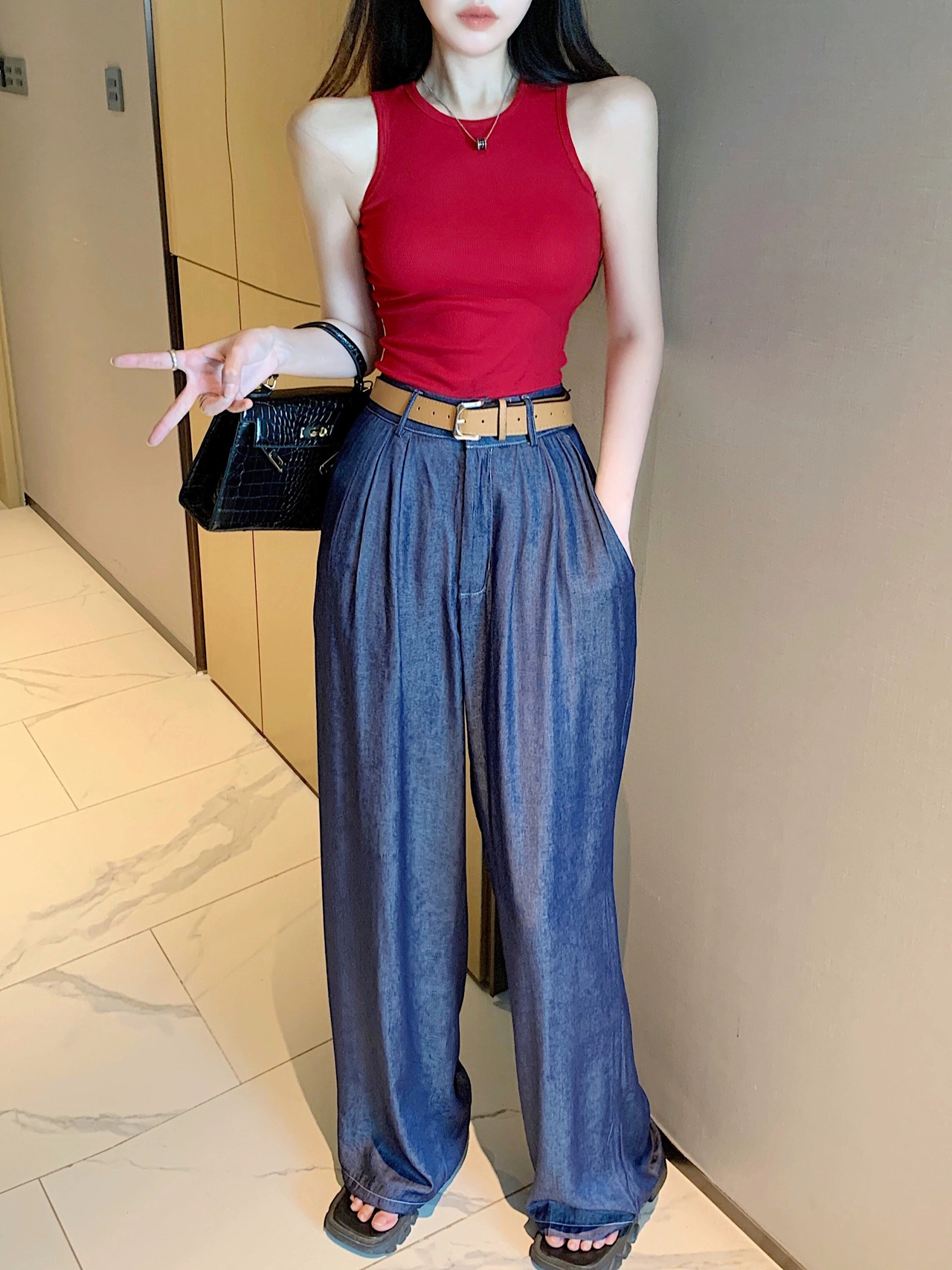 色:赤いベスト,ベルト付きアイスシルクパンツ