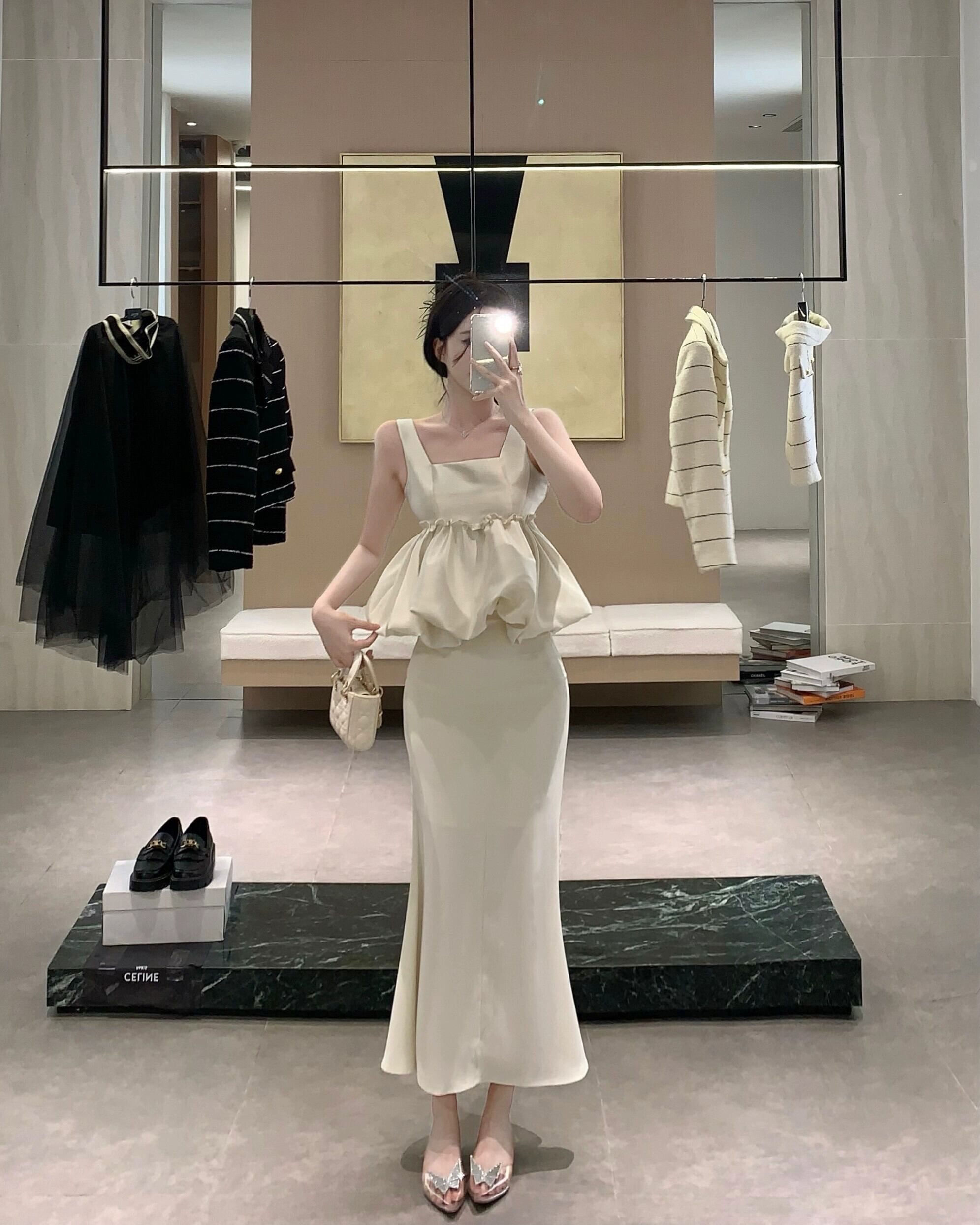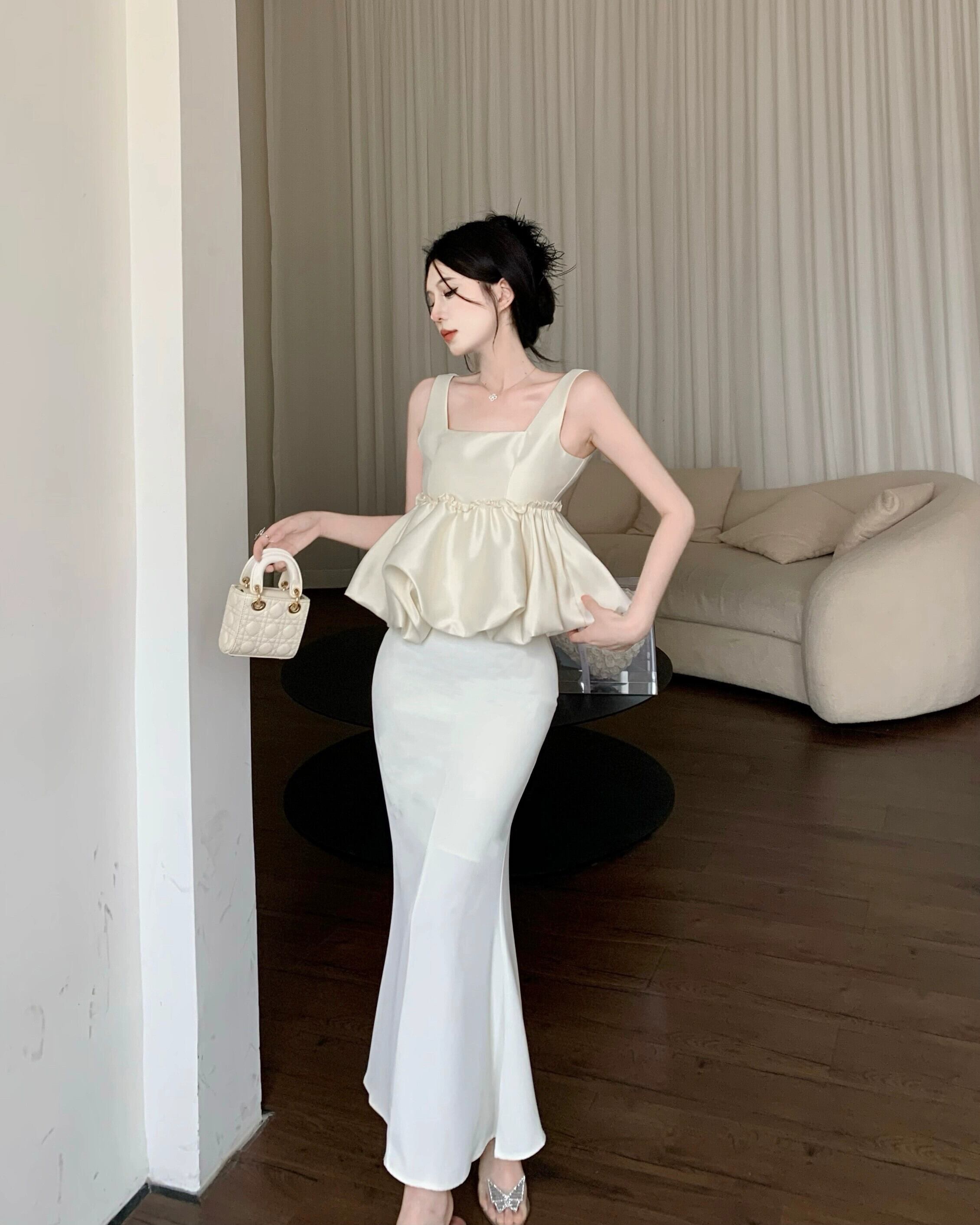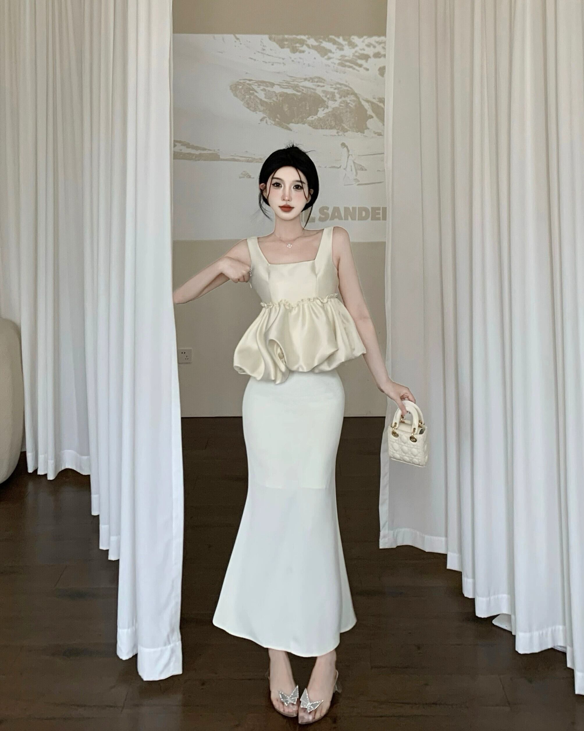 色:アプリコットトップ,ブラックトップ,黄色のシャツ,黒スカート,アプリコットスカート