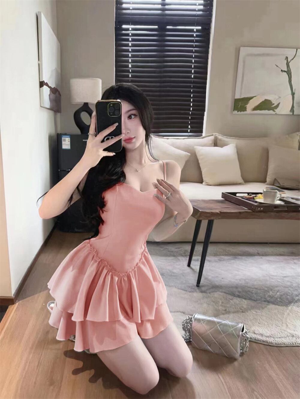 スパイス純粋な欲望風サスペンダードレス女性の夏のハイウエスト痩身ケーキスカートフランス逃亡王女のショートスカート ハイウェスト サマー 夏物 ピュア nana28400792890 | modepoisson