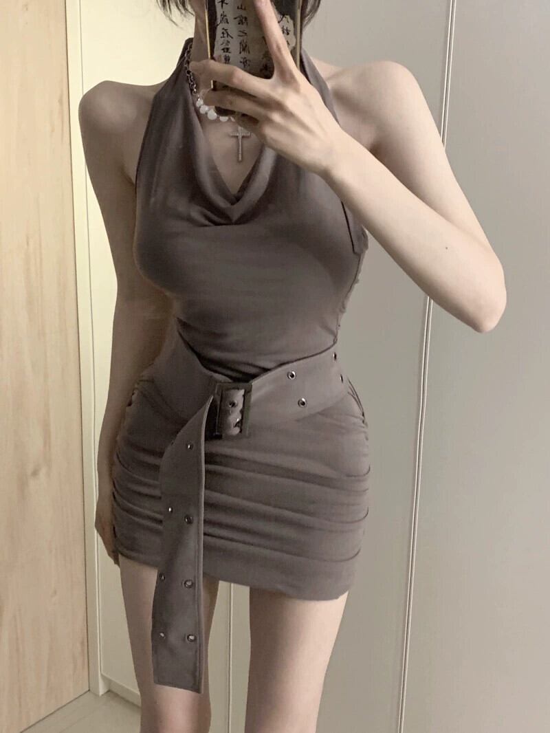 スパイスガールズホルターネックサスペンダードレスベルト女性夏ノースリーブスリムニッチパッケージヒップスカートセクシーなスリムスカート サマー 夏物 ハーネス nana34684651980 | modepoisson