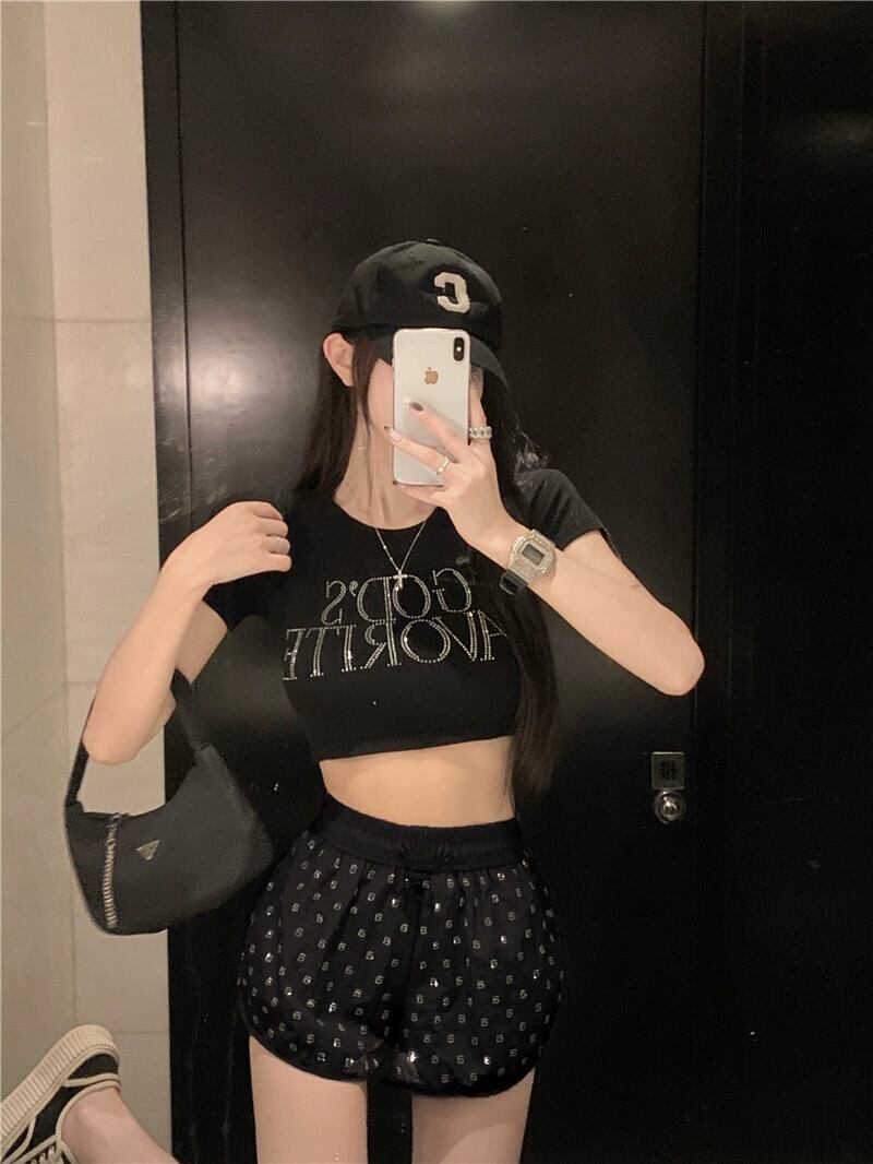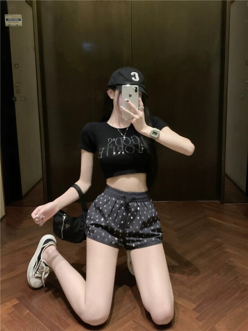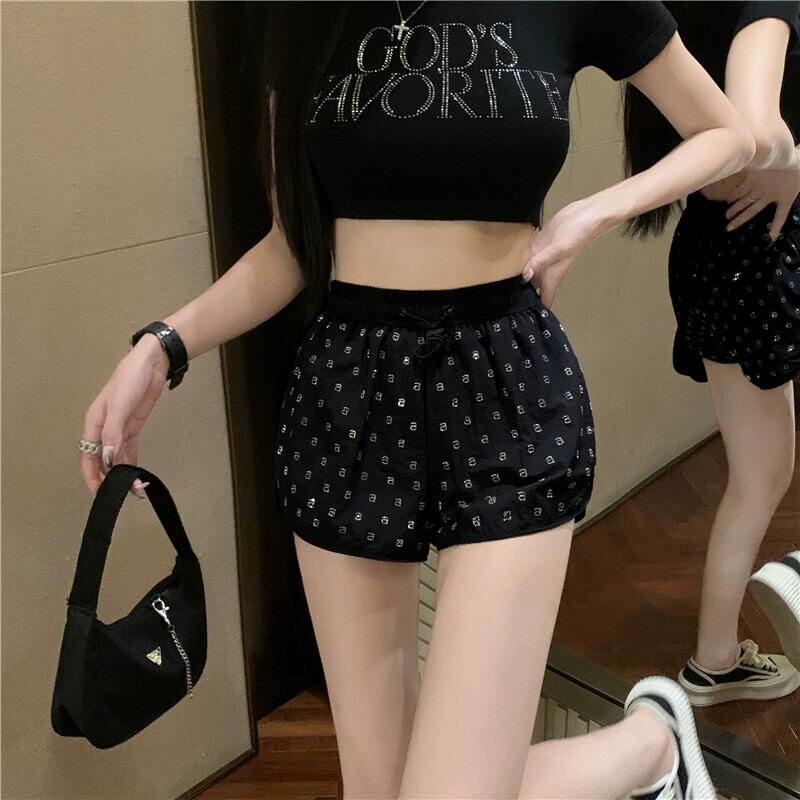 重工業ドリルショートパンツ夏弾性ドローストリングハイウエストスリムで小さなストレートワイドレッグカジュアルパンツレディースパンツ ハイウェスト エラスティック 伸縮 サマー 夏物 ワイドパンツ nana33927112858 | modepoisson
