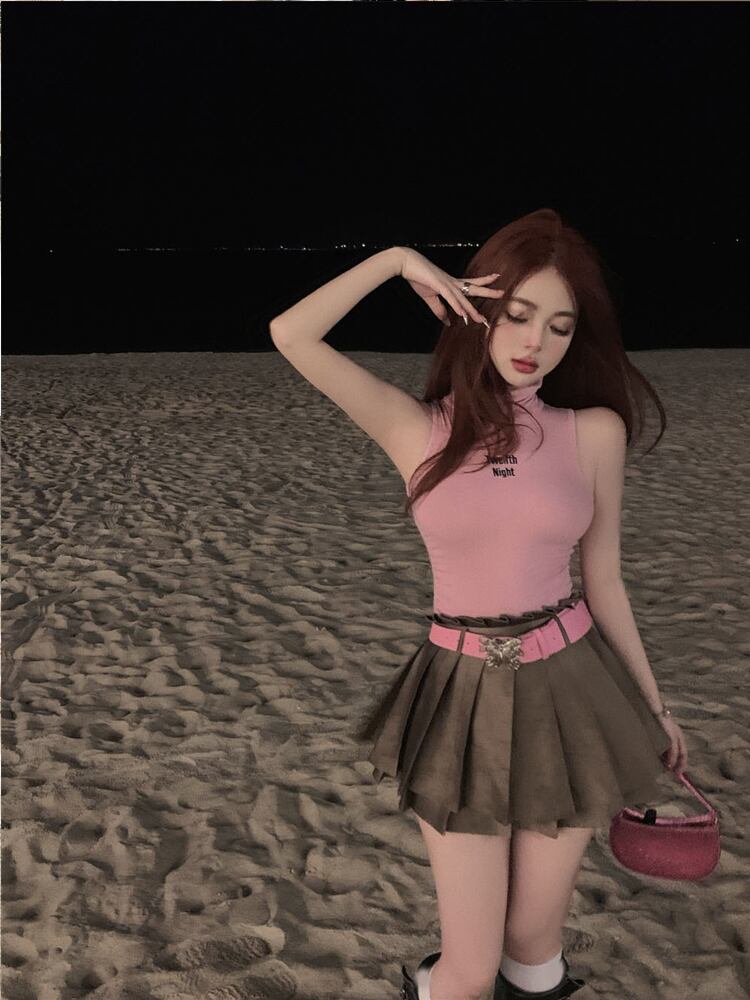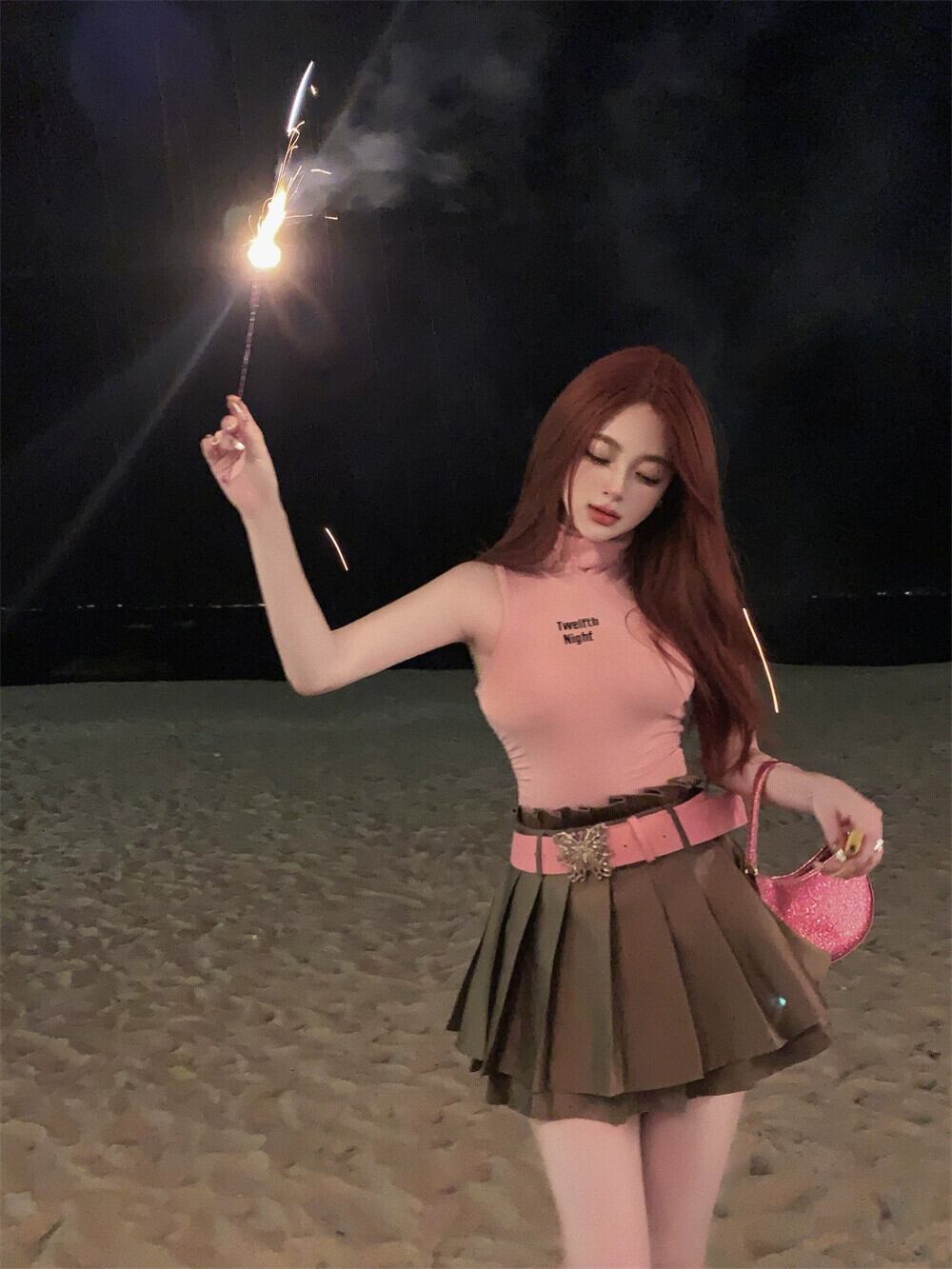 セクシーなスパイスガールスリムスリムベストネットレッド 2023 フライドストリートスーツ夏プリーツスカートスカート 2 点セット サマー 夏物 nana79991284751 | modepoisson