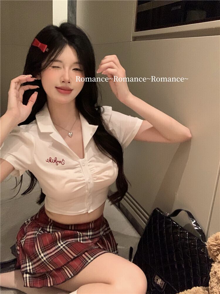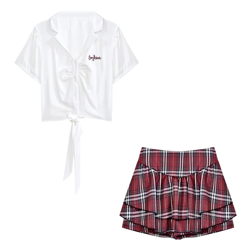 スタイルショートトップハイウエストフリルチェック柄ハーフレングスパンツスカート甘辛風スーツ女性夏 ハイウェスト 大人ガーリー スウィート キュート カジュアル サマー 夏物 nana26968217505 | modepoisson