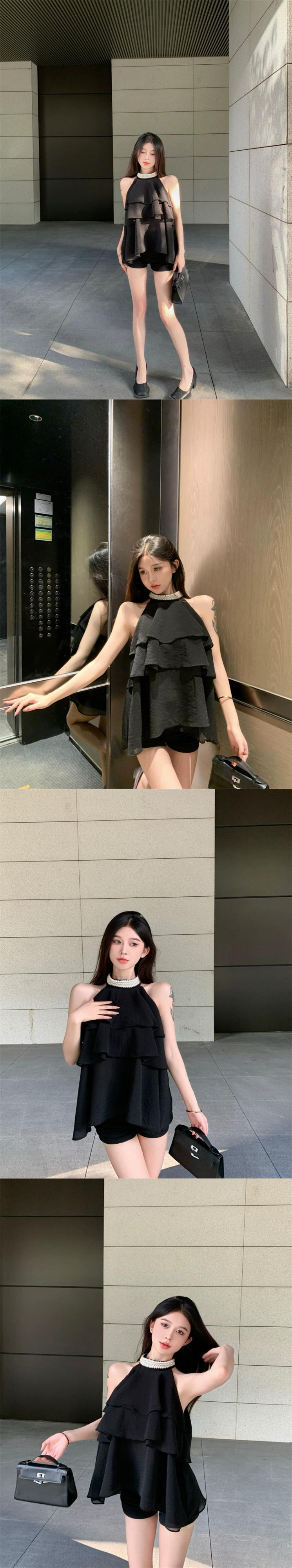 スパイスガール パール ホルター シフォン シャツ レディース 夏 ノースリーブ 不規則な ルーズ フリル エッジ 美しい 西洋風 トップス サマー 夏物 真珠 nana79058965323 | modepoisson