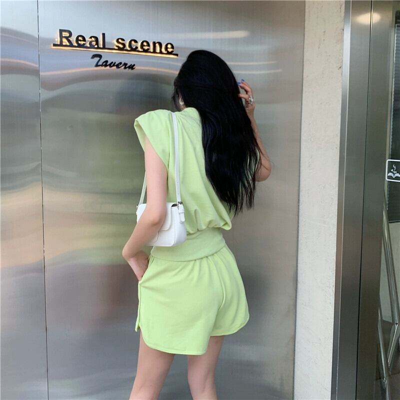 フライドストリートファッションスーツ香港スタイル夏eignスタイルノースリーブトップハイウエストカジュアルショートパンツ今年人気の2点セット女性 ハイウェスト サマー 夏物 ショーツ ブルマー nana7580282717 | modepoisson