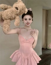 ホットハイエンドサスペンダードレス女性の夏の新しい甘い純粋な欲望気質vネックaラインスカートふわふわショートスカート 大人ガーリー スウィート キュート カジュアル サマー 夏物 ピュア nana62736428568 | modepoisson