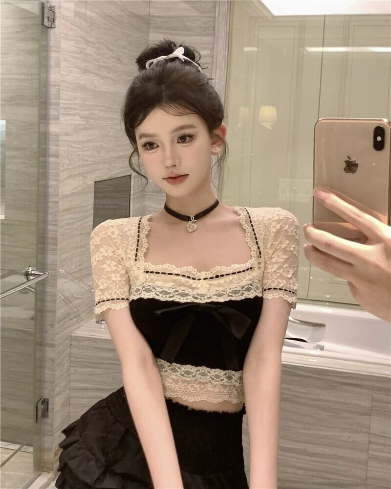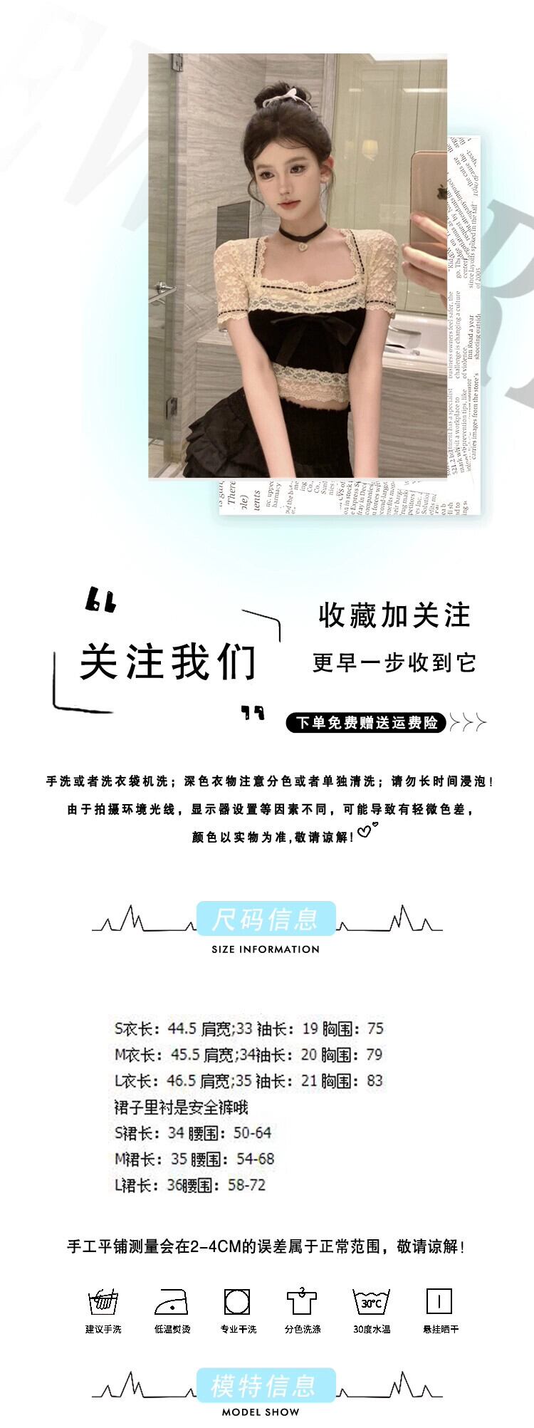 ライト高級ニッチフライストリートスーツフレンチレースステッチレトロトップハイウエストふわふわスカートスカート女性の夏 ハイウェスト サマー 夏物 nana3188357881 | modepoisson