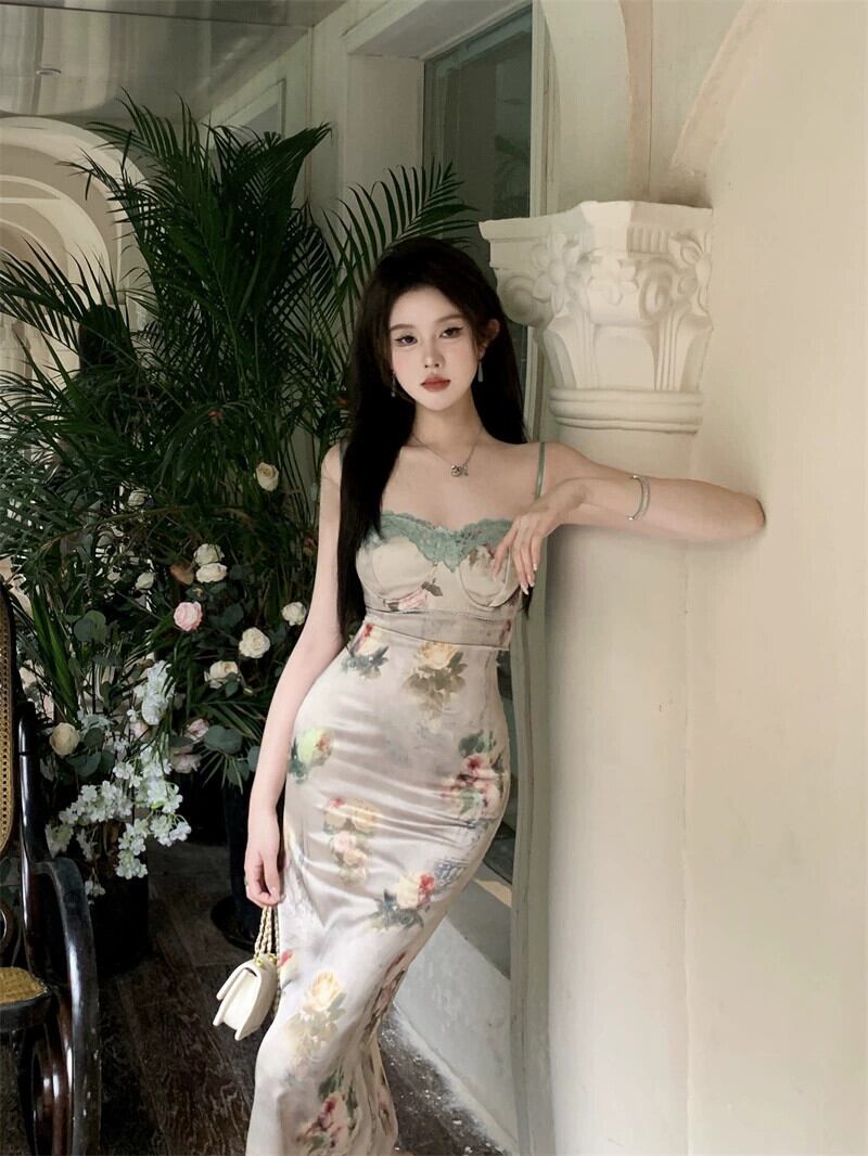 スパイスガールズ セクシー スリング ドレス レディース フレンチ レース プリント ウエスト スリム スリム ミドル丈 ドレス - 夏終了 サマー 夏物 nana84808398113 | modepoisson