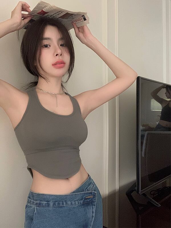 胸パッド付きで暑い、背中が美しいキャミソールは外に着ても中は細く見える、ノースリーブの吊りネックショートトップス、夏の女性向け サマー 夏物 nana41253433378 | modepoisson