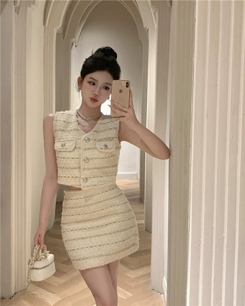 有名人 Xiaoxiang 気質ベストトップハイウエスト痩身スカートライト高級ニッチ揚げストリートスーツ女性の夏 ハイウェスト サマー 夏物 nana18213068174 | modepoisson