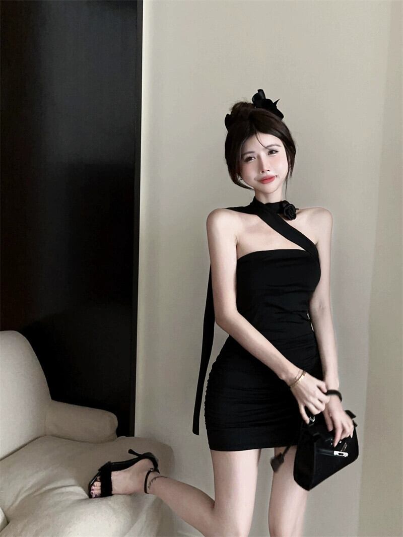 スパイスガールズワンショルダーチューブトップドレススリムスリムセクシーなパッケージヒップスカート気質リトルブラックドレス夏のショートスカート サマー 夏物 nana51570157594 | modepoisson