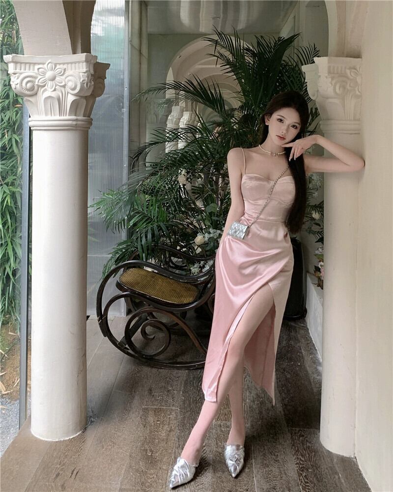 - 細く見えたいという純粋な欲求サスペンダードレスレディースフレンチサテンスカートレディース優しいセクシーなロングスカート夏新作 サマー 夏物 ピュア nana8979840724 | modepoisson