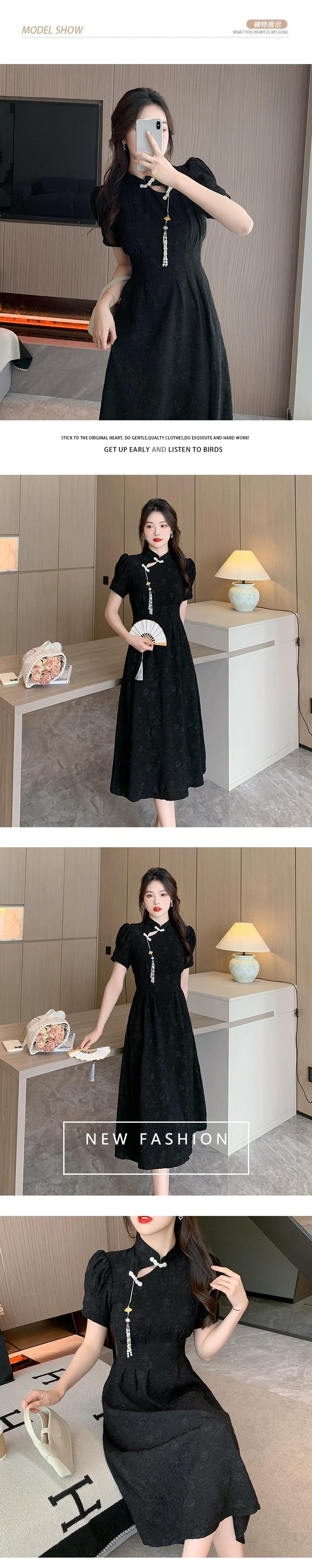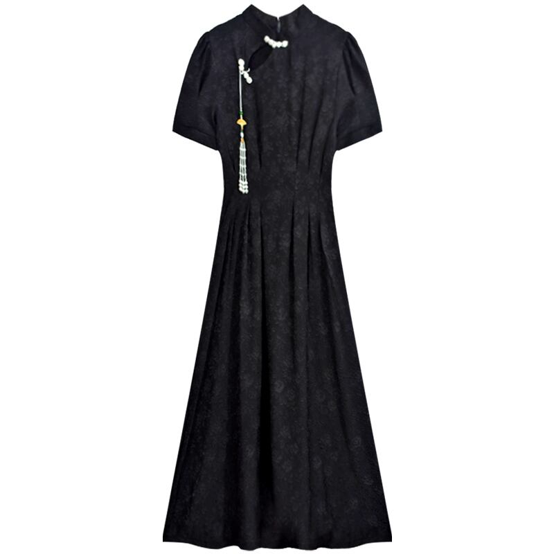 中国風のドレスの女性のレトロな改善されたチャイナ スカート ウエスト プリーツ痩身ロング スカート夏 2023 新しいスタイル サマー 夏物 nana37897594250 | modepoisson