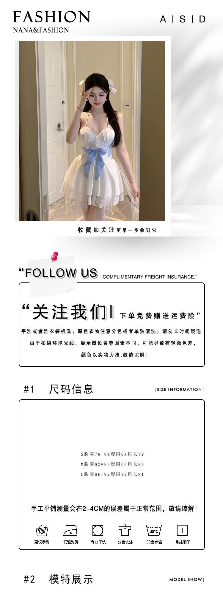 純粋な欲望甘いサスペンダー爆発的なスタイルのドレス 2023 新しいちょう結びメッシュステッチショートスカート女性の夏 リボン 大人ガーリー スウィート キュート カジュアル サマー 夏物 nana67341322684 | modepoisson