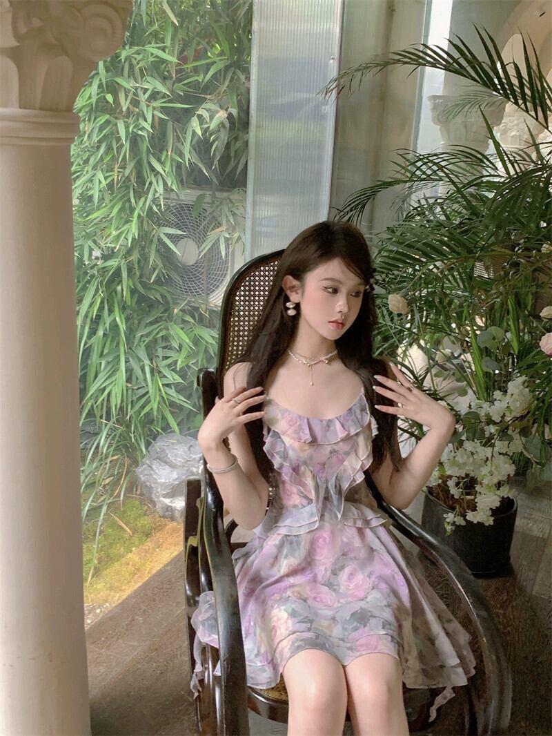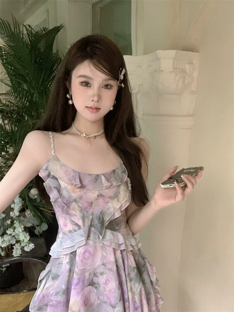 フレンチサスペンダードレス甘辛風揚げストリートスーツスカートサマーブラウス花柄美しい小さなスカートツーピース女性 大人ガーリー スウィート キュート カジュアル 夏物 nana26121011172 | modepoisson