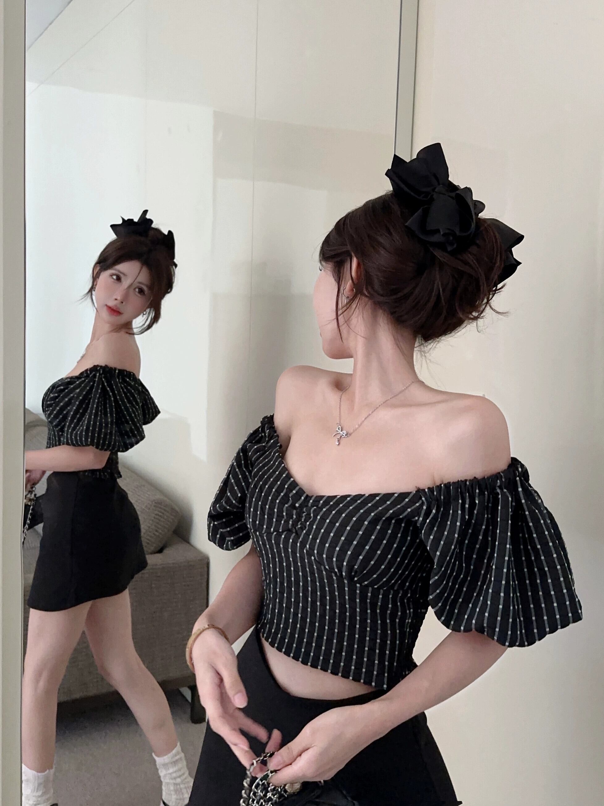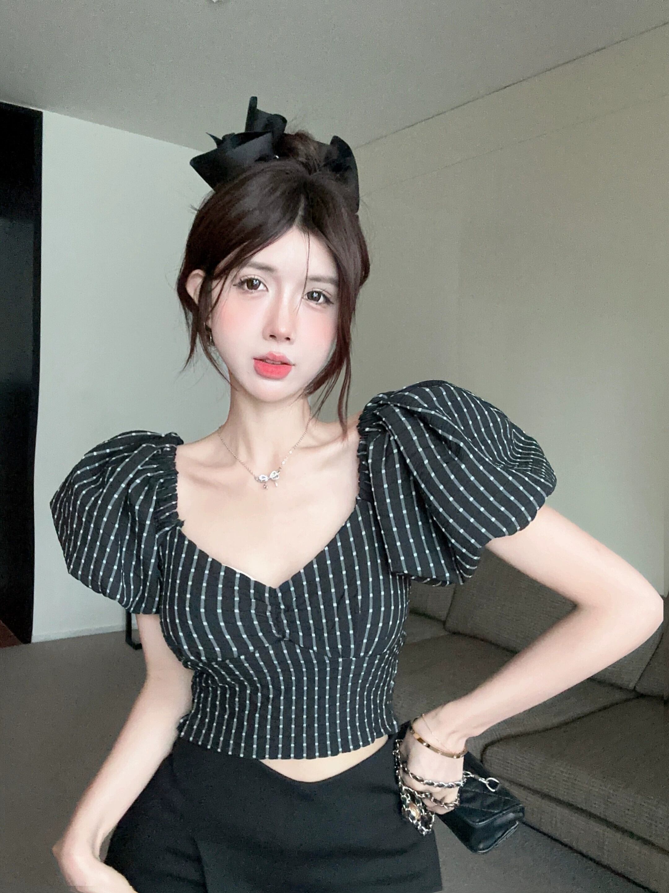 フレンチパフスリーブシフォンシャツシックセンスショートスウィートスパイシースタイル多用途スモールトップ女性夏 大人ガーリー キュート カジュアル サマー 夏物 nana1347148339 | modepoisson