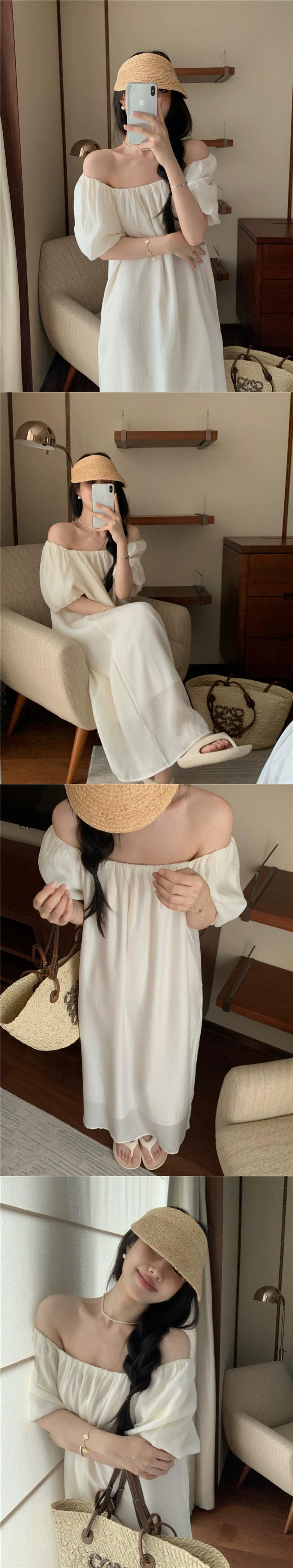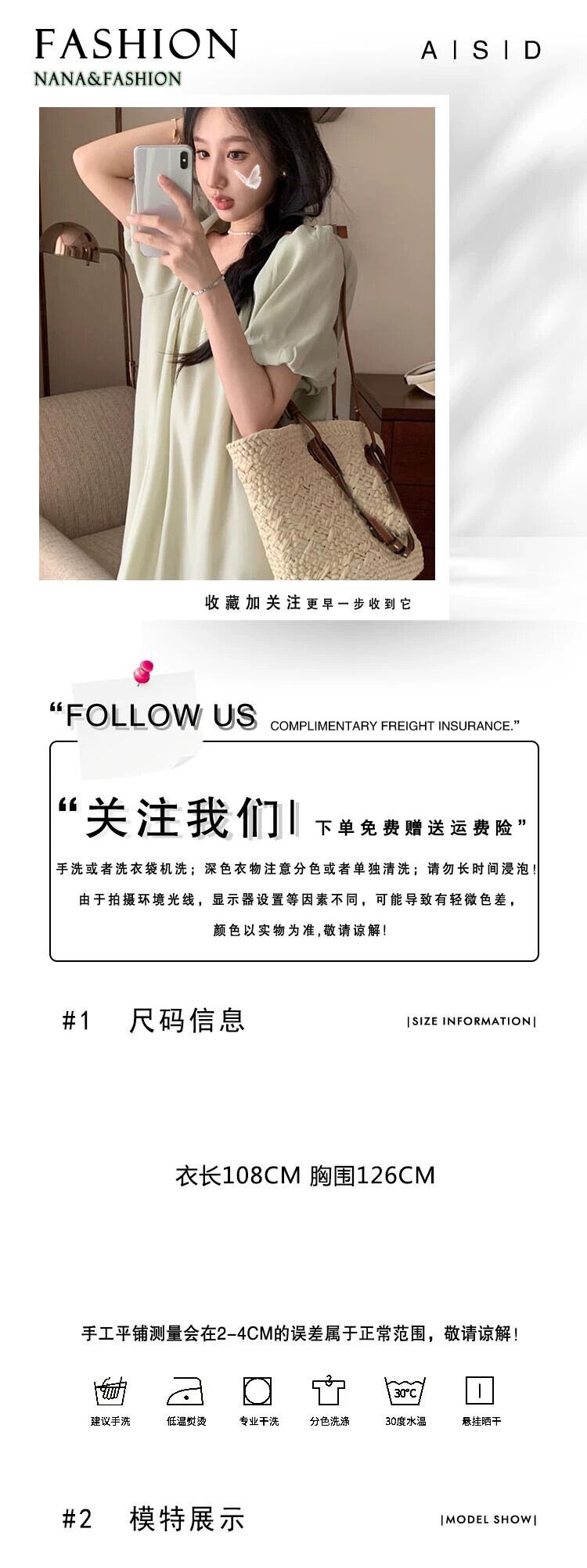 フレンチスクエアネック気質ドレス女性の夏の甘いロングドレス 2023 ルーズスリムパフスリーブスカート 大人ガーリー スウィート キュート カジュアル サマー 夏物 スクウェア nana72303868376 | modepoisson