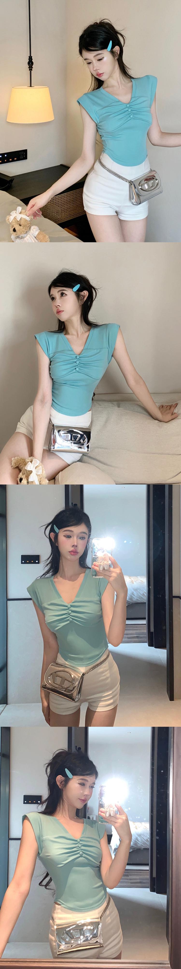 スパイス純粋な欲望 V ネック半袖 Tシャツ女性フレンチデザインセンスニッチショート小さなフライングスリーブセクシーシックトップ夏 サマー 夏物 Vネック ピュア nana62784929833 | modepoisson