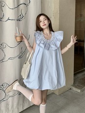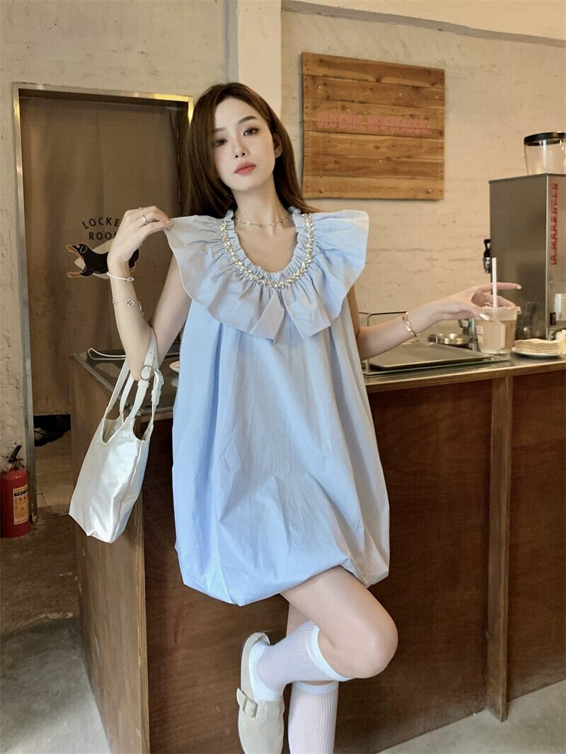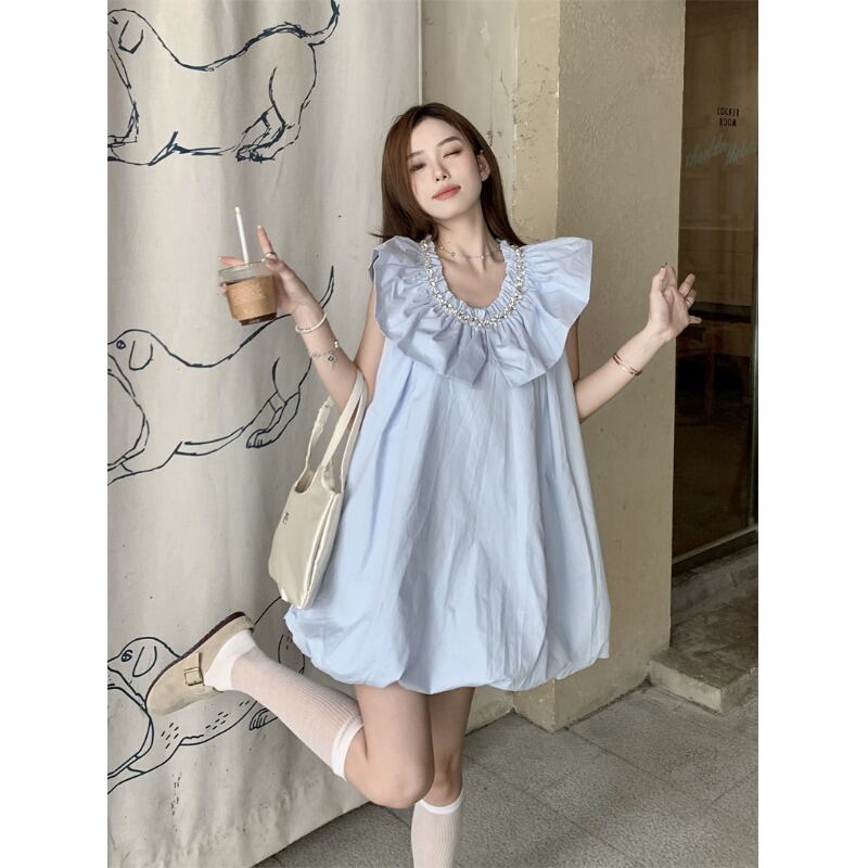 フランスの気質小さなドレス女性の夏の新しいニッチ蓮の葉ショートスカートノースリーブ甘い妖精スカート 大人ガーリー スウィート キュート カジュアル サマー 夏物 nana18776480890 | modepoisson