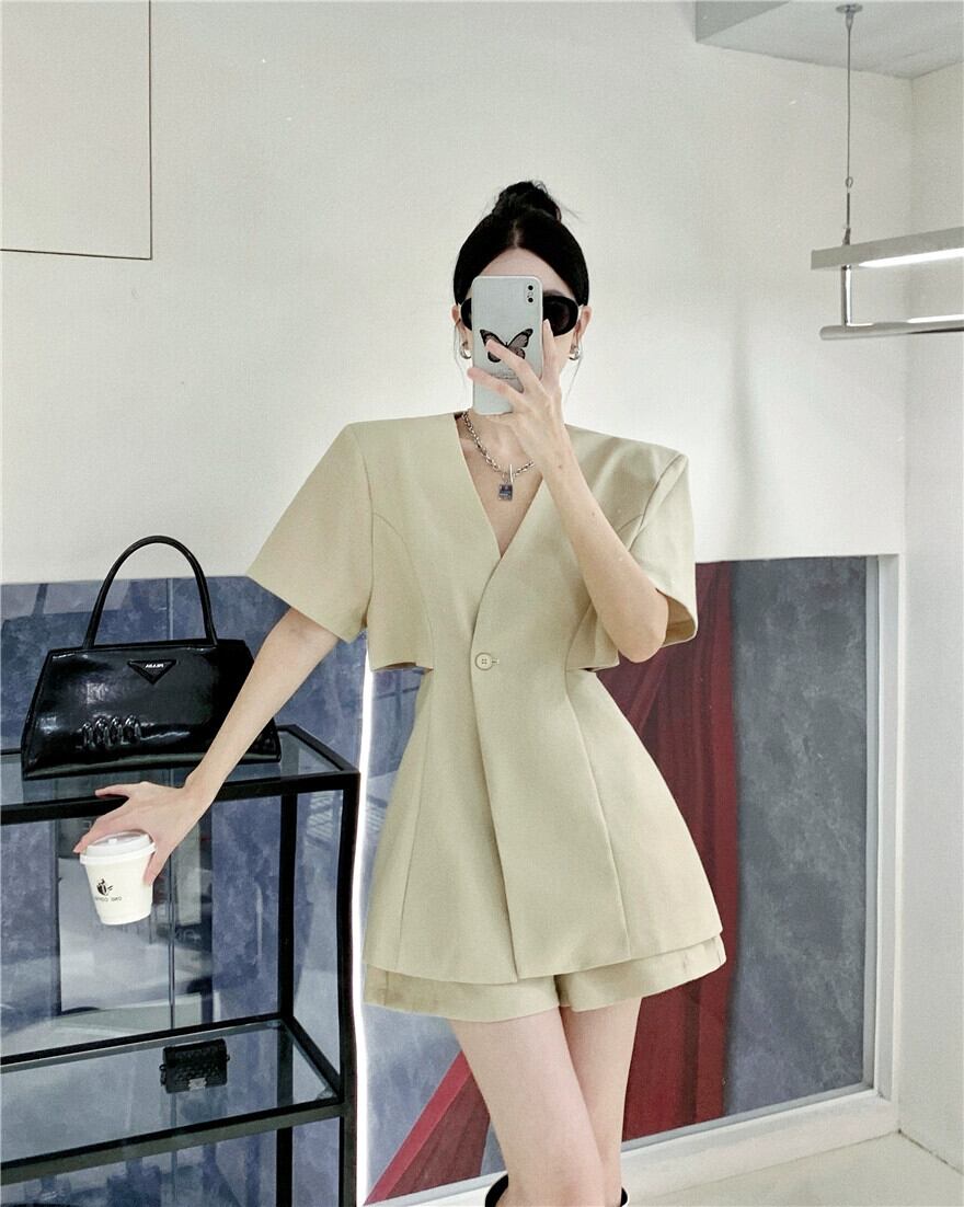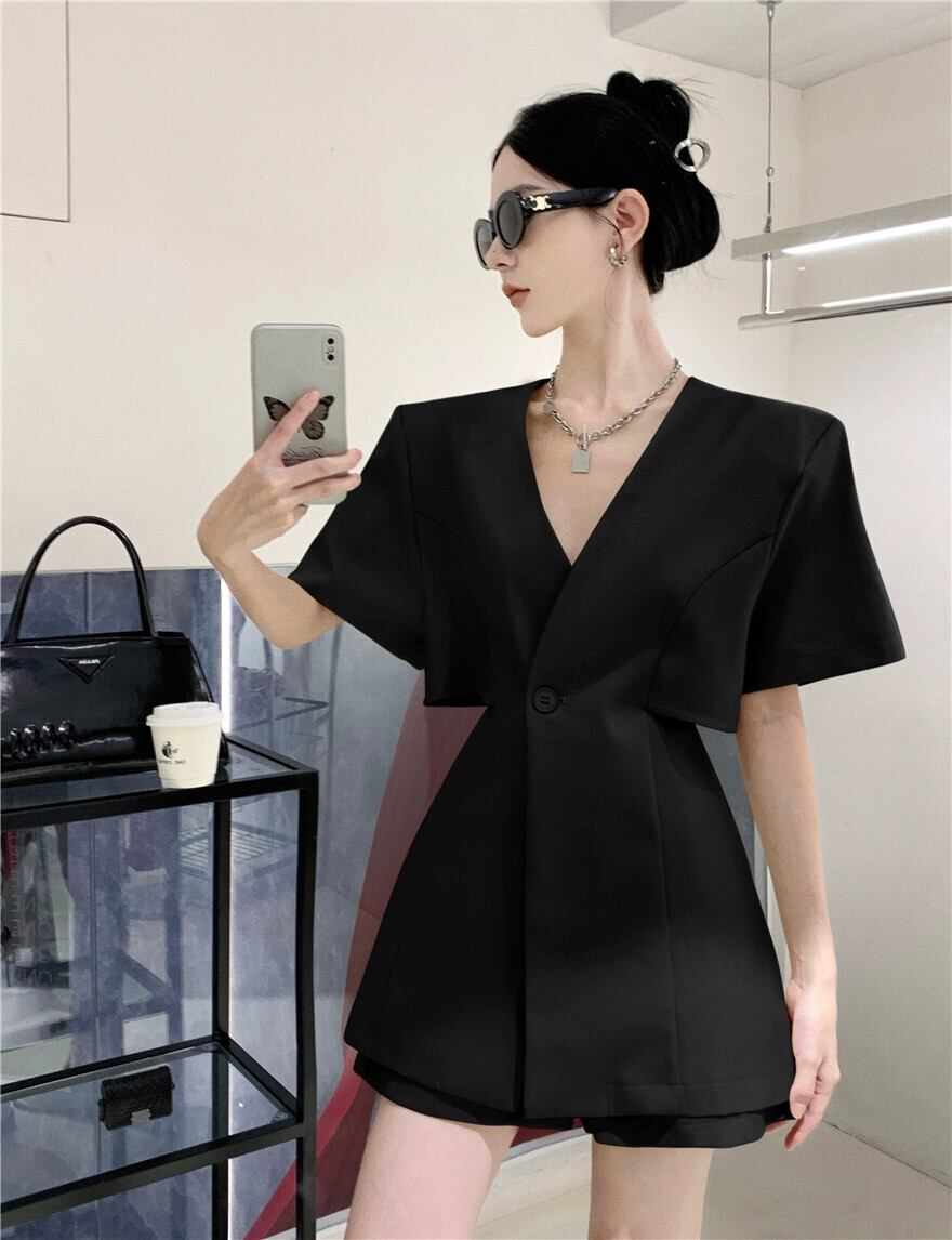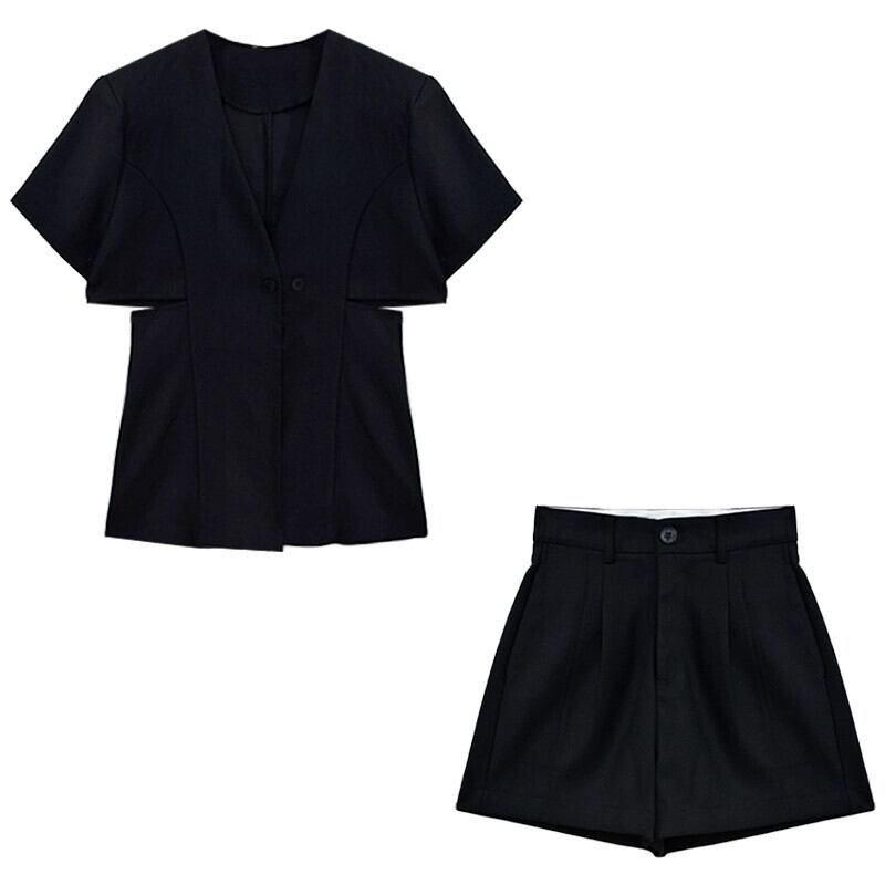 半袖トップコート ハイウエスト ワイドレッグ ショーツ 高級ファッション スーツ 老化気質 レディース 2 点セット 女性 夏 サマー 夏物 ブルマー nana97761940591 | modepoisson