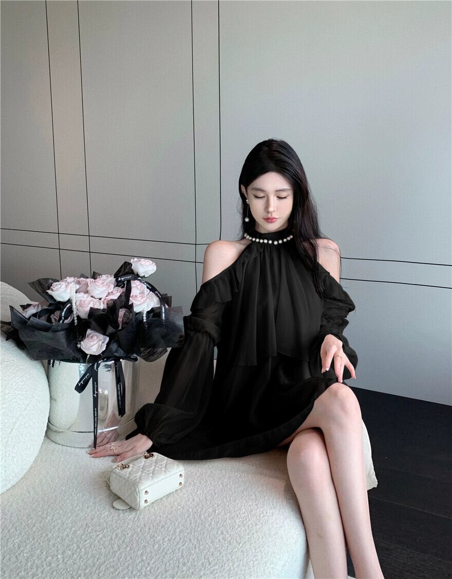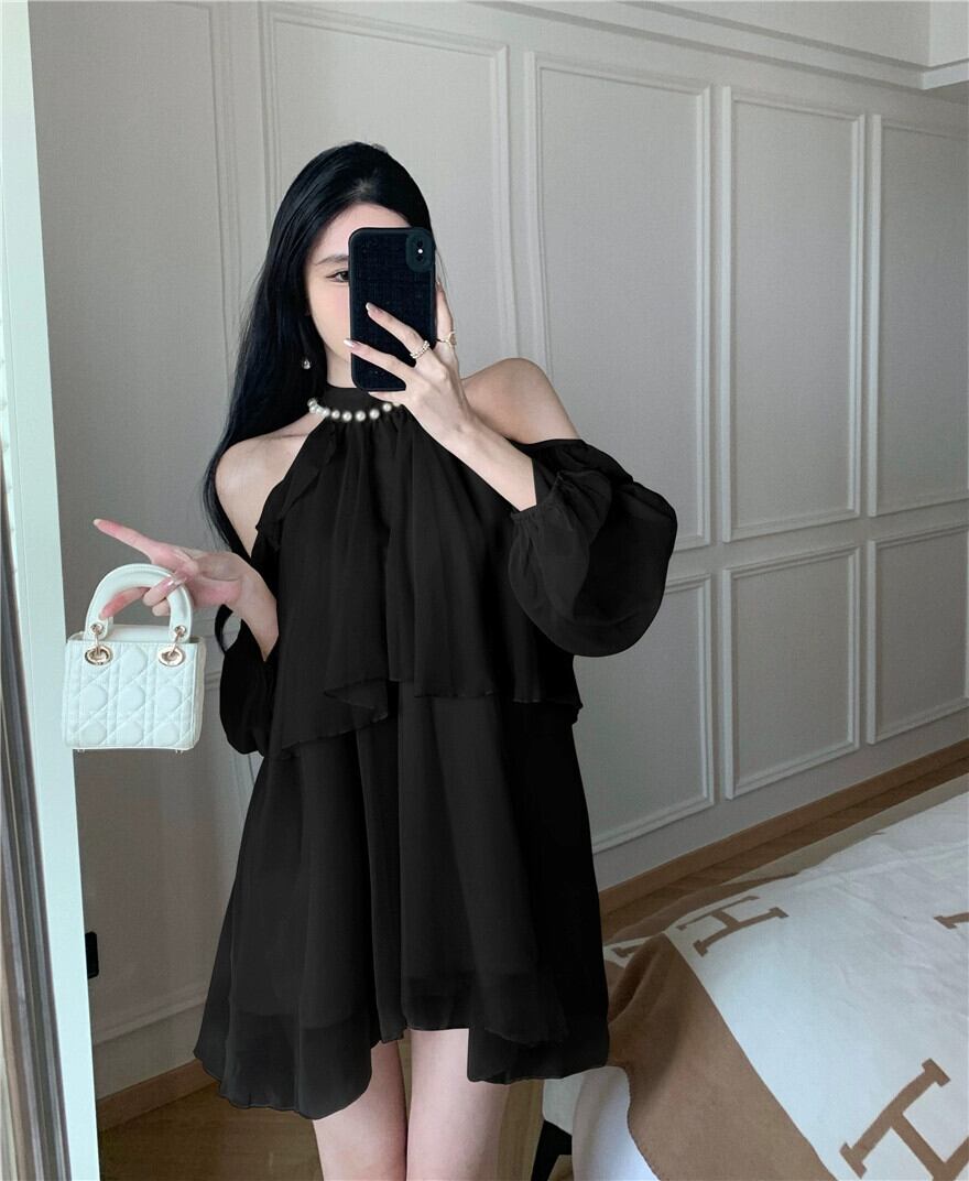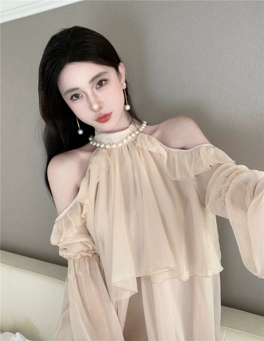 美しいファッションシフォンシャツぶら下げネックストラップレス婦人服 2023 夏の新スタイルフレンチフリル気質甘いトップ 大人ガーリー スウィート キュート カジュアル サマー 夏物 nana50501440388 | modepoisson