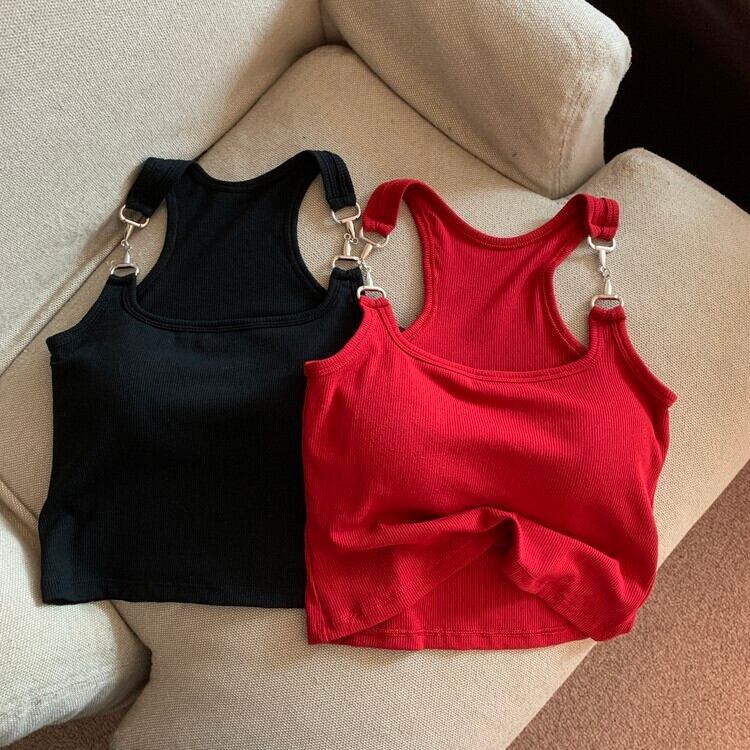 純粋な欲望の甘くてスパイシーなスタイルのチェーンスリングデザインオールマッチフレンチベストアウターウェアノースリーブトップレディース夏 大人ガーリー スウィート キュート カジュアル サマー 夏物 nana49778013522 | modepoisson