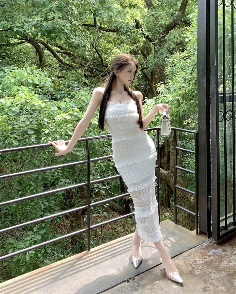 フレンチスタイルの気質ショーフィギュアドレス女性のハイエンドセンスセレブシフォンストラップチューブトップスカート夏白ロングスカート ホワイト サマー 夏物 nana51257920604 | modepoisson
